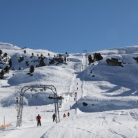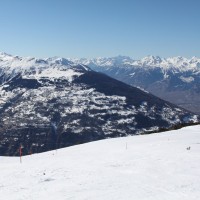 Blick in die 4 Vallées, hier der Paradehang von Les Collons mit seinen zahlreichen Schleppliften und Sesselbahnen, März 2012