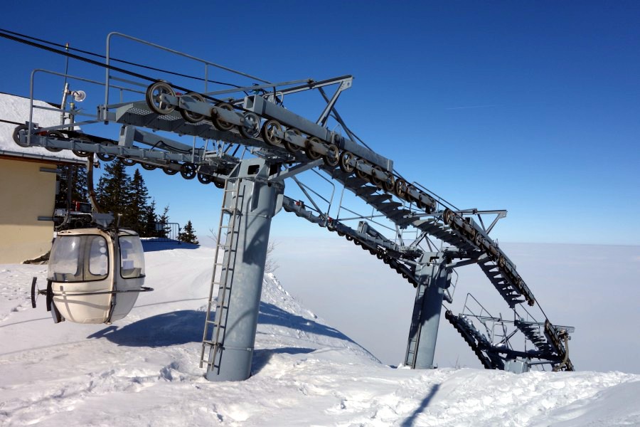 Eine kultige Poma-Eiergondelbahn, zwei Sesselbahnen und zahlreiche Schlepplifte von Poma und Montaz Mautino erschliessen die Hänge des Skigebiets Thollon-les-Mémises mit atemberaubender Aussicht auf den Genfer See.