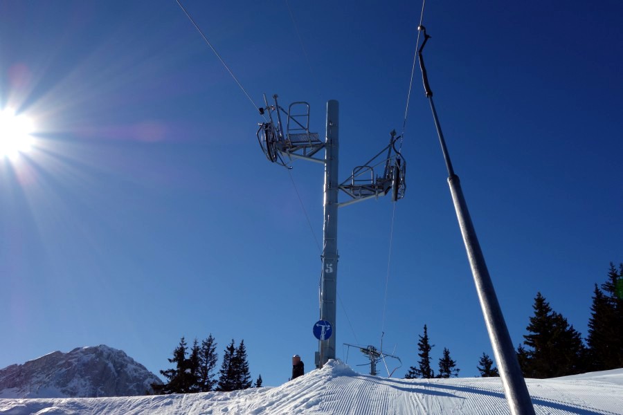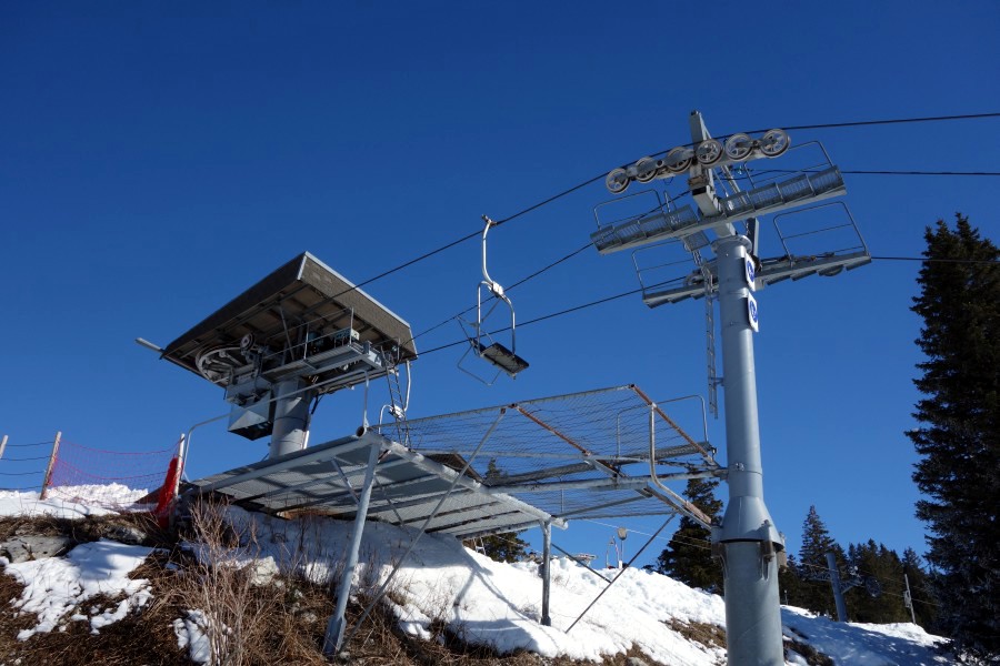 Bergstation der kurzen Sesselbahn Accès von Poma, März 2013