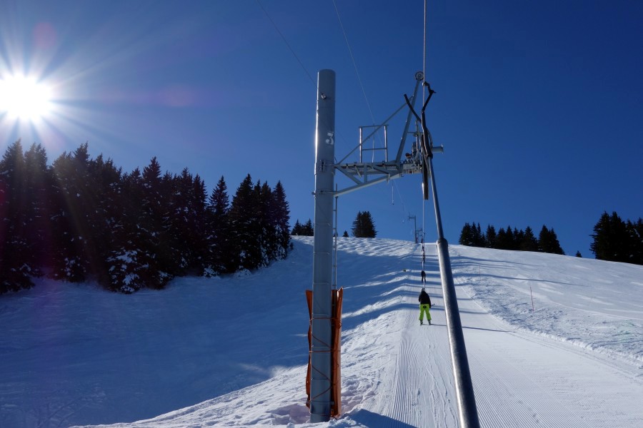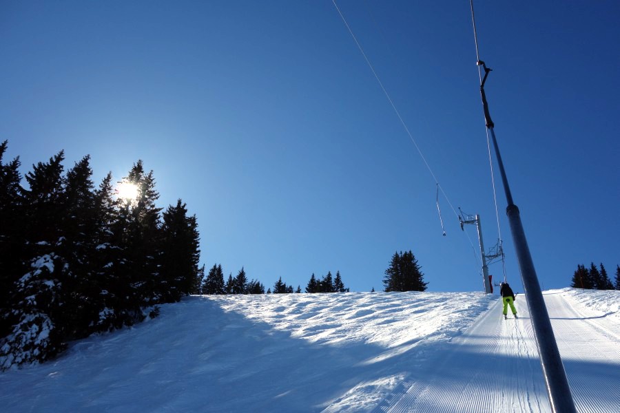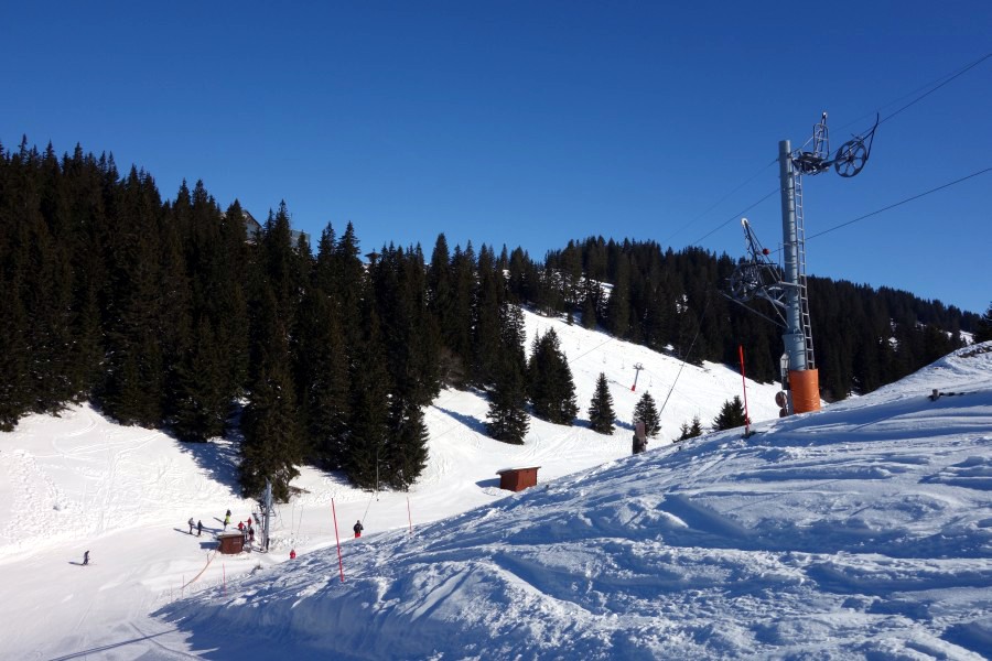 Die am weitesten westlich gelegenen Hänge erschliesst der Schlepplift Tétras, März 2013