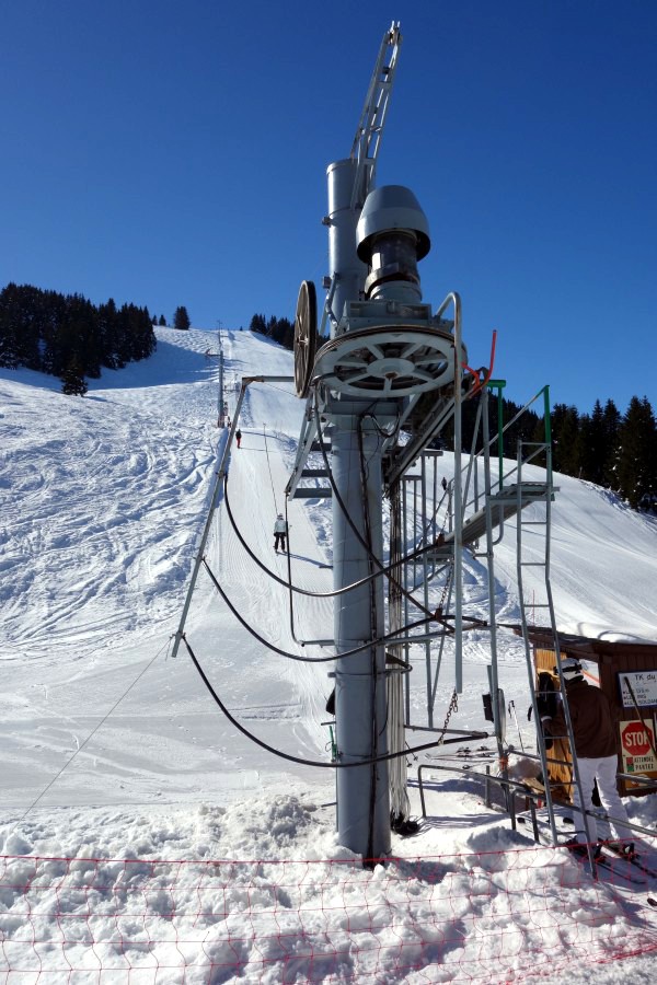 Talstation des Schlepplifts Tétras, ein typischer Montaz-Mautino-Schlepplift, März 2013