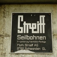 Firmenlogo an der Talstation des Schlepplifts Alp da Munt, Oktober 2013