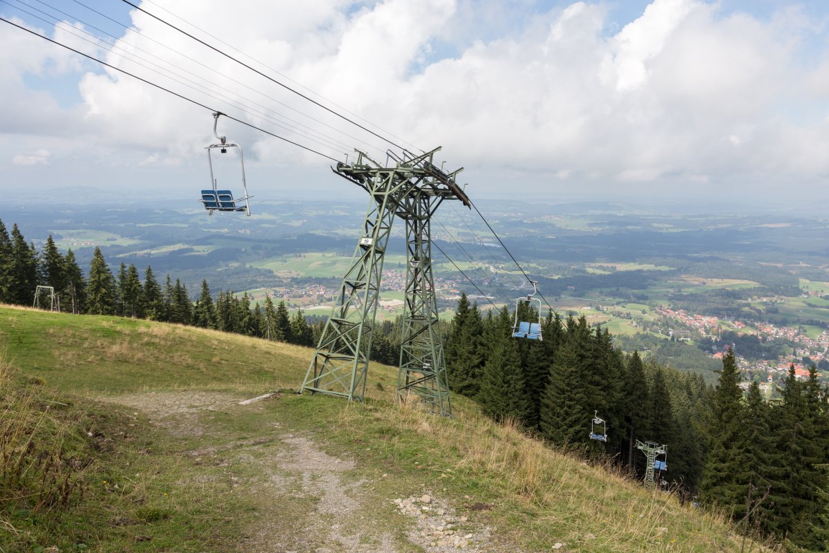 Die Hörnle-Sesselbahn in Bad Kohlgrub ist die letzte ihrer Art mit Sesseln, die beim Ausstieg zur Seite schwenken.