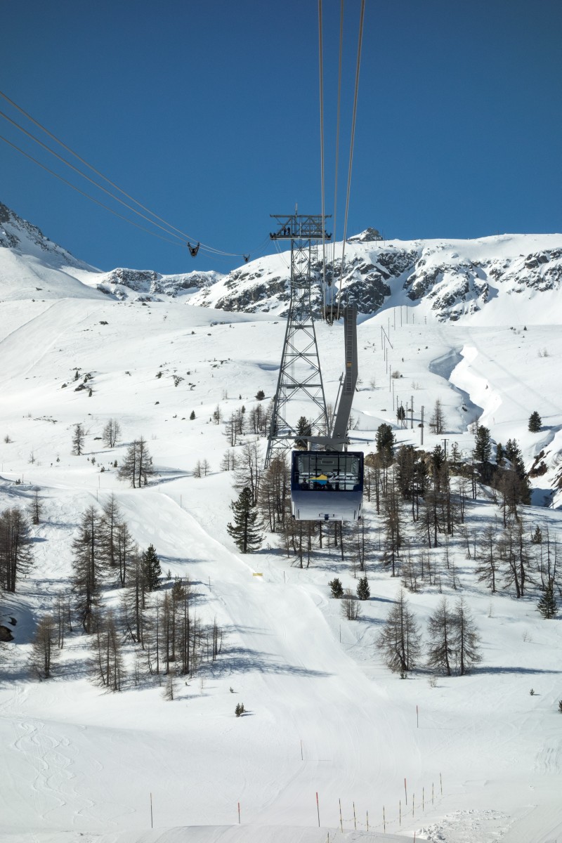 Luftseilbahn Bernina-Diavolezza, eine Garaventa-Konstruktion aus den 80er Jahren, April 2015