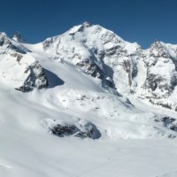 Panorama von der Diavolezza auf Piz Palü und Piz Bernina, April 2015