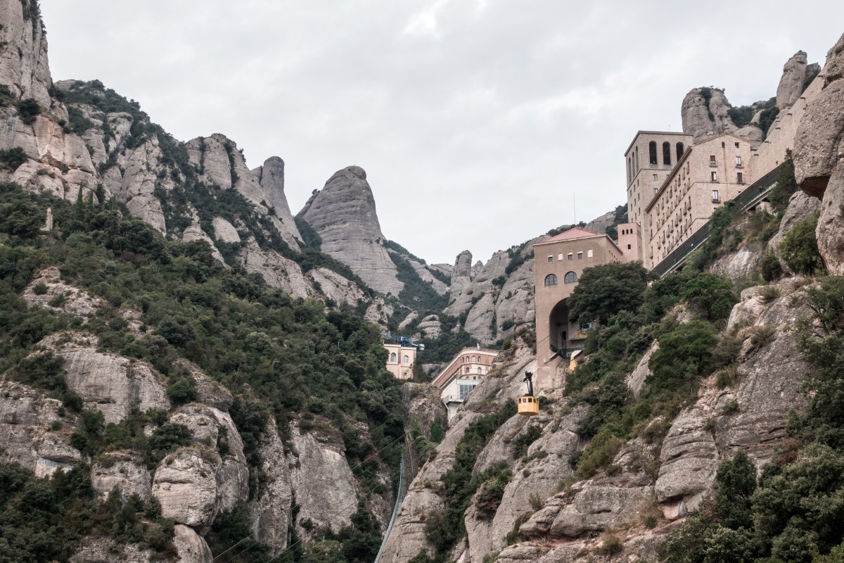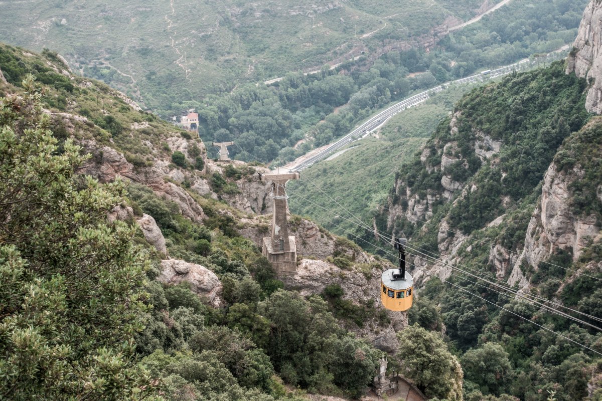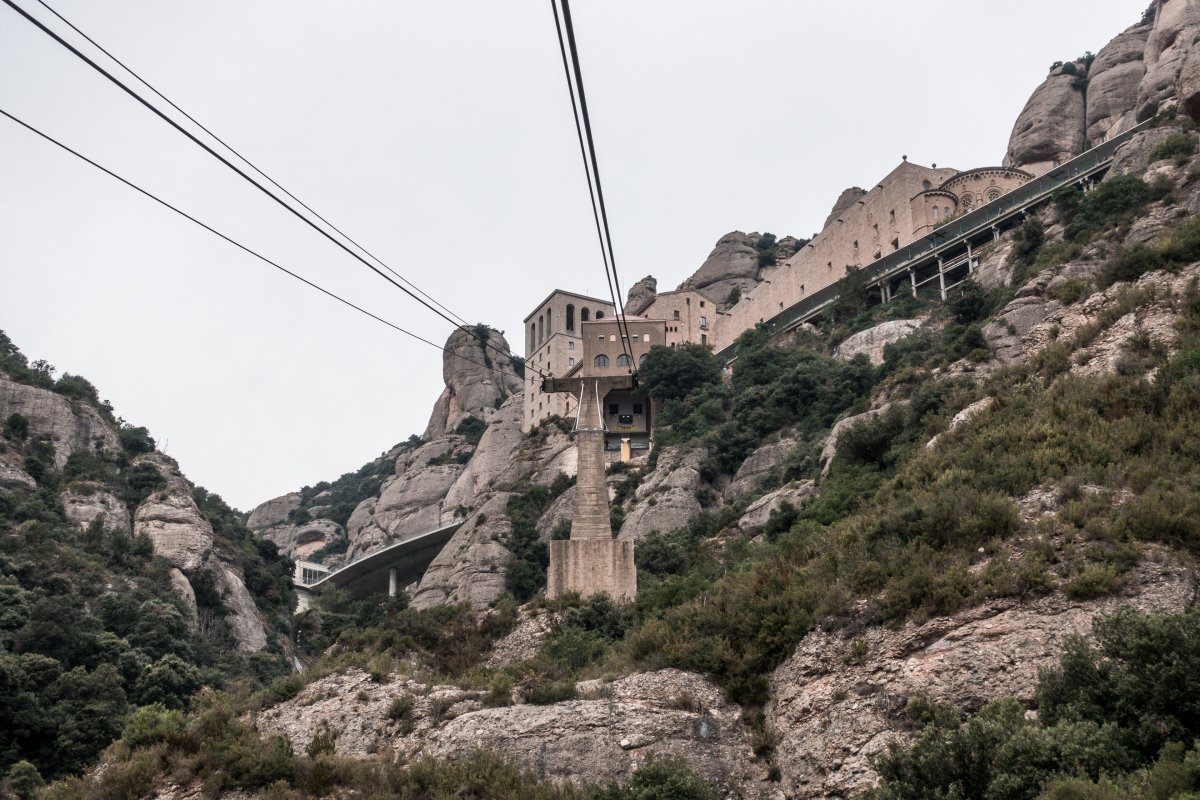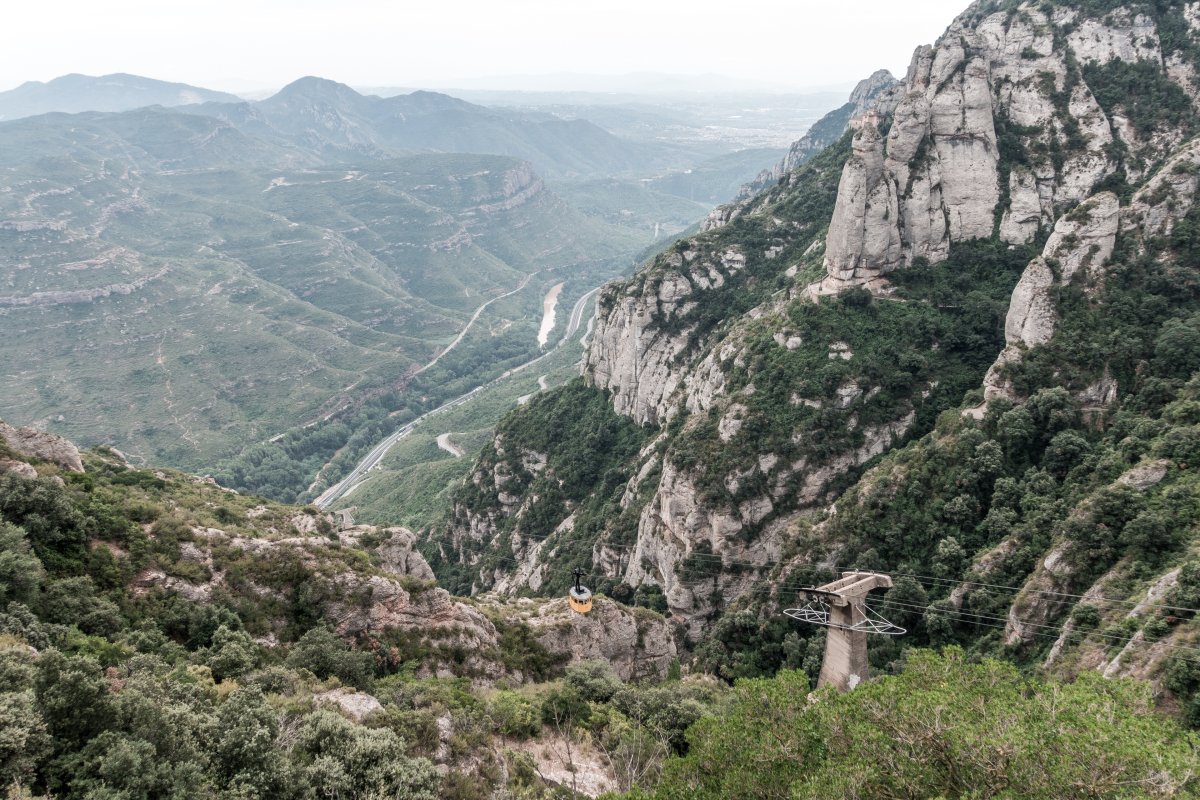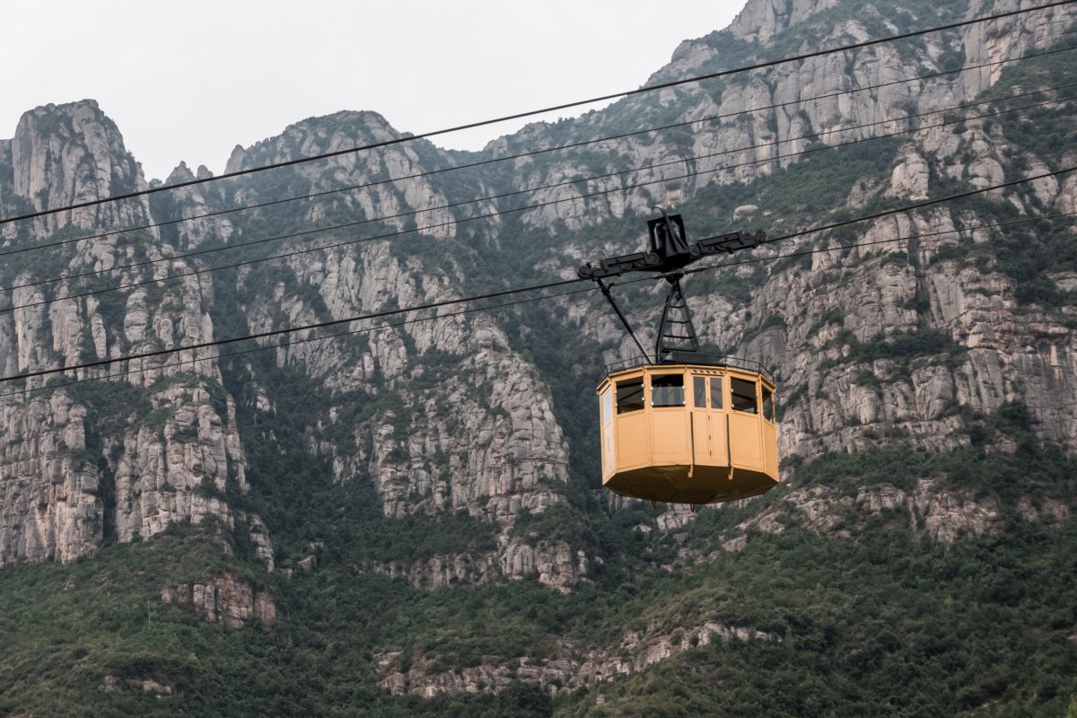 Der Touristenmagnet Montserrat nördlich von Barcelona kann aus dem darunterliegenden Tal mit einer historischen Luftseilbahn der Firma Bleichert aus den 1930er Jahren erreicht werden.