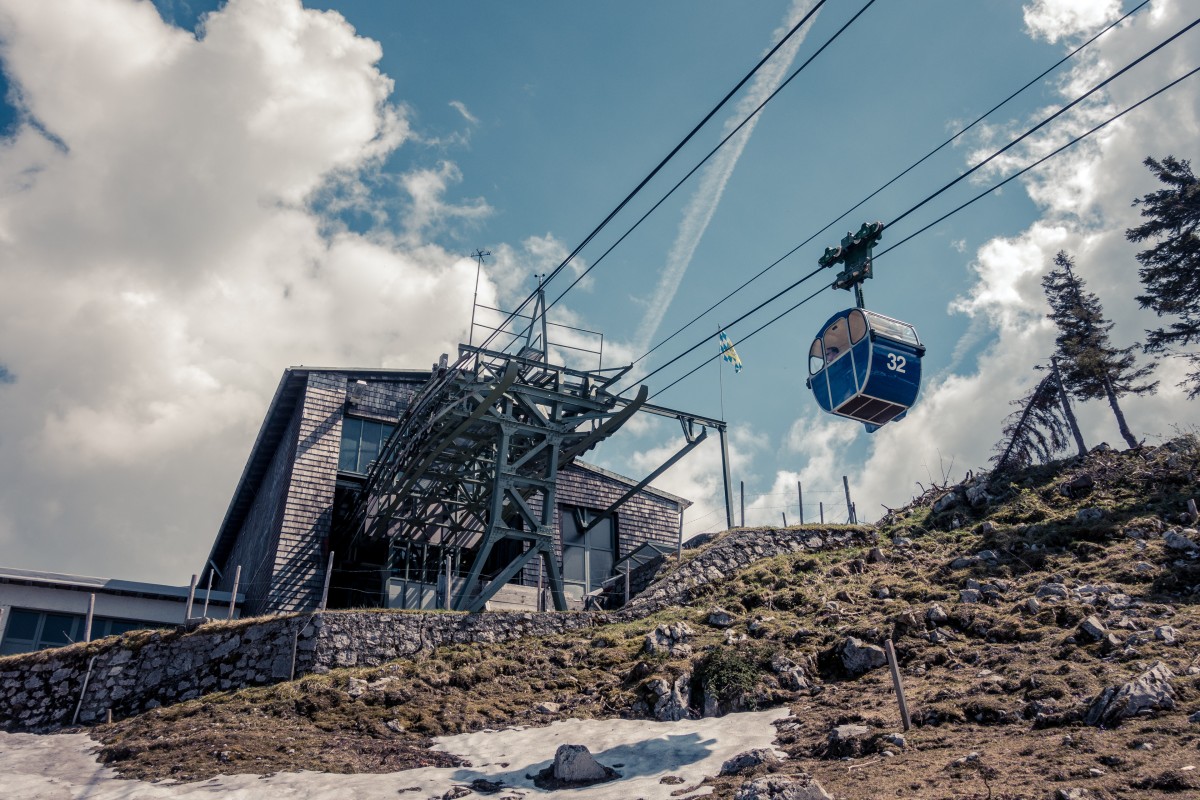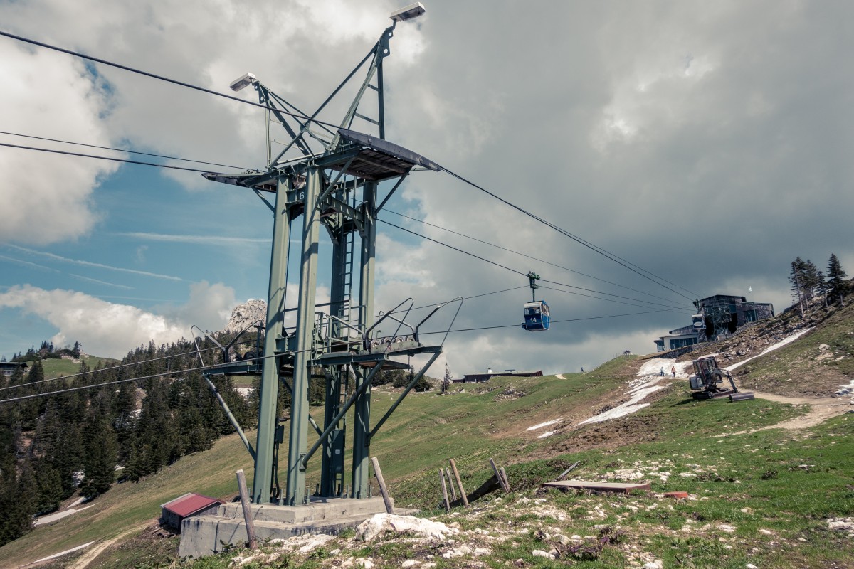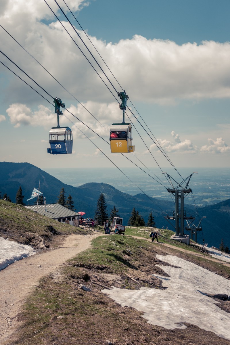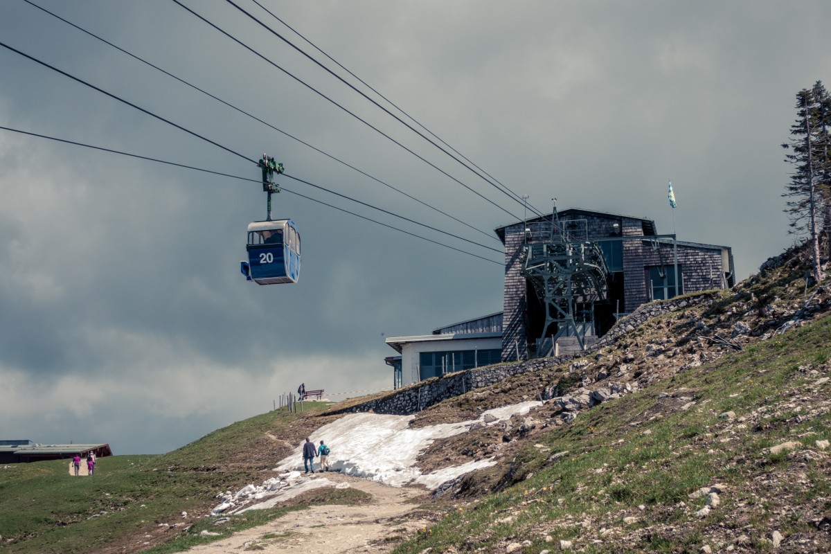 Von Aschau im Chiemgau führt eine Zweiseilumlaufbahn der Firma Hasenclever auf die Kampenwand. Nicht nur das Seilbahnunikat ist eine Reise wert, sondern auch die Aussicht auf die bayerischen Alpen und den Chiemsee.