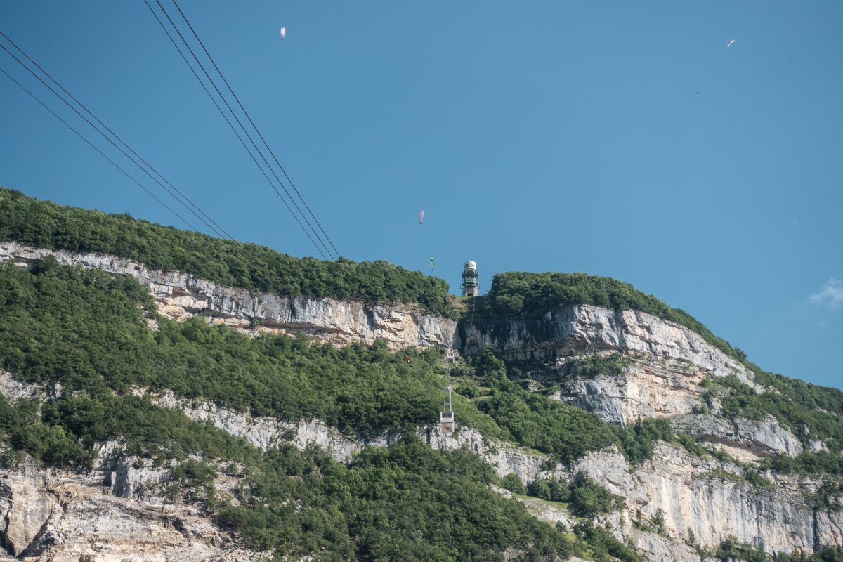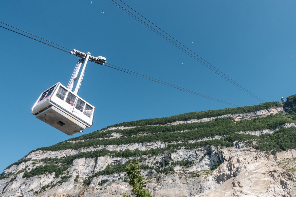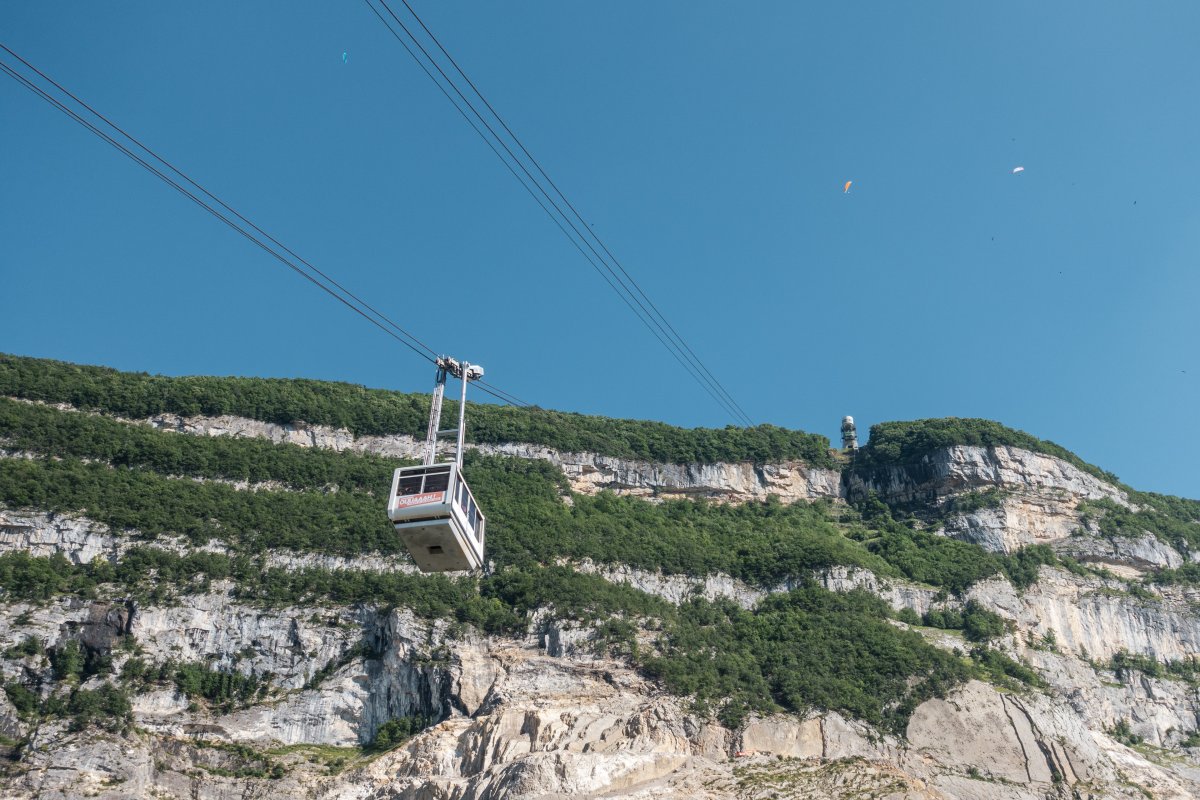 Zu Besuch auf dem Mont Salève, einem markanten Gipfel südlich von Genf mit prachtvollem Ausblick auf die Stadt und den Genfer See. Erschlossen ist der Berg mit einer spektakulären stützenlosen Luftseilbahn.