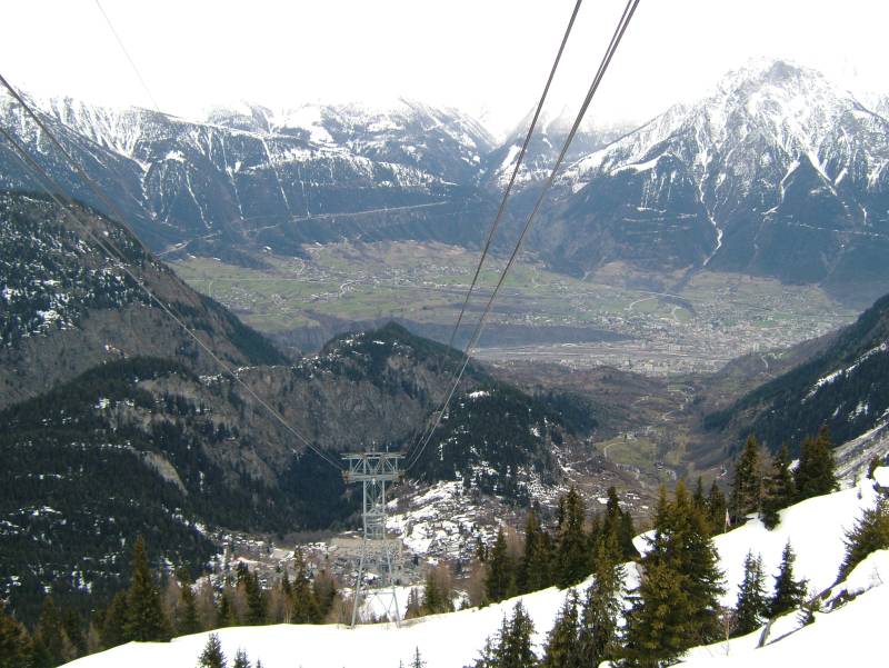 Skigebiet oberhalb von Blatten bei Naters im Oberwallis mit einem interessanten Mix aus Sesselbahnen und Schleppliften, darunter dem letzten Exemplar eines Kurvenschlepplifts von Küpfer mit zwei parallelen Förderseilen.