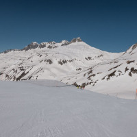 Skipiste zum Oberalppass im Skigebiet Sedrun, März 2022