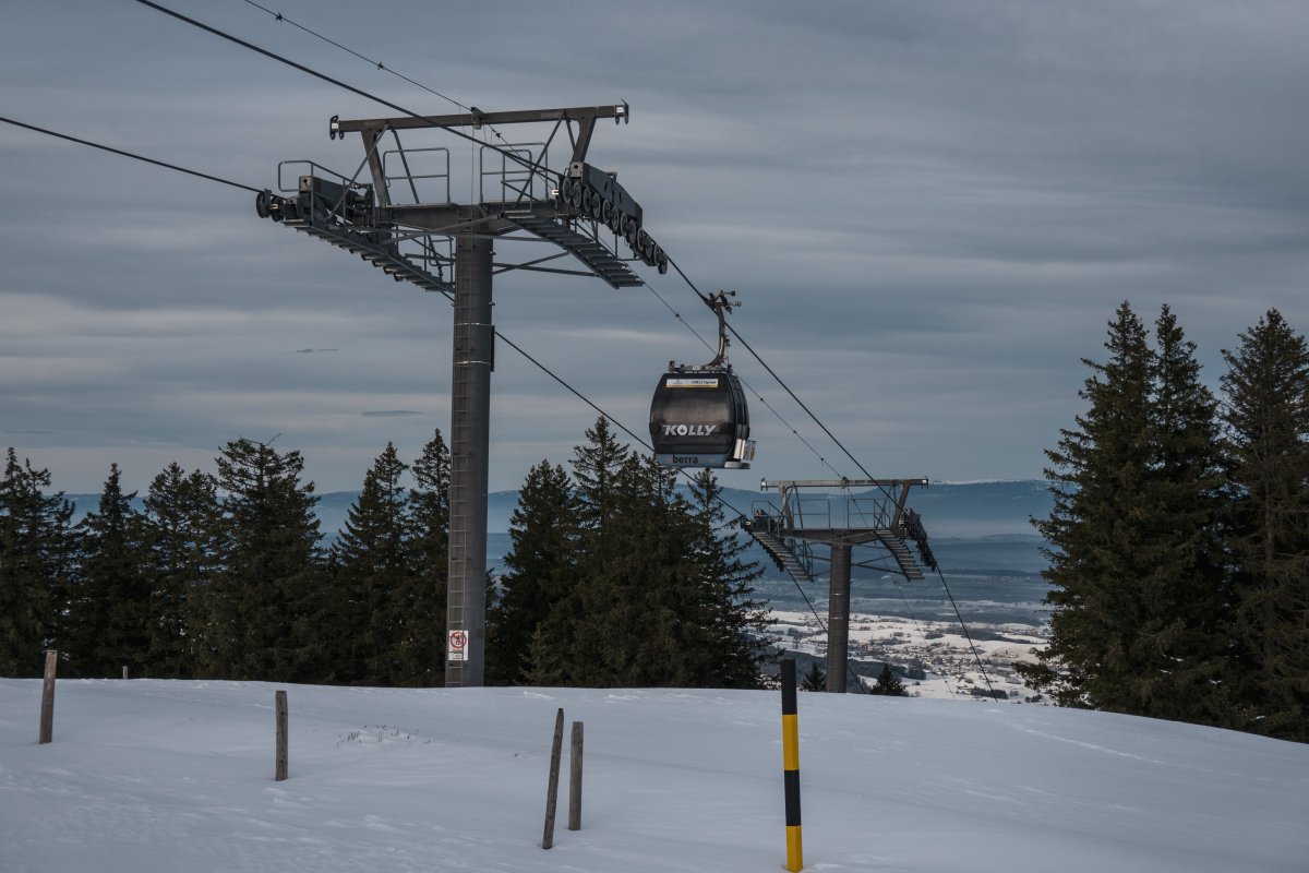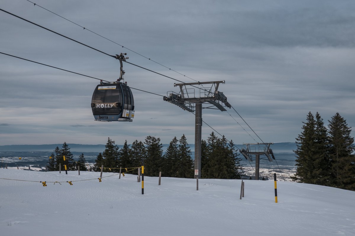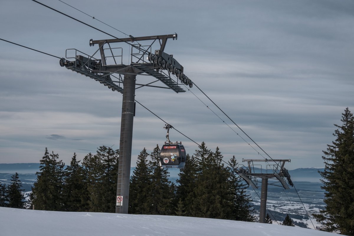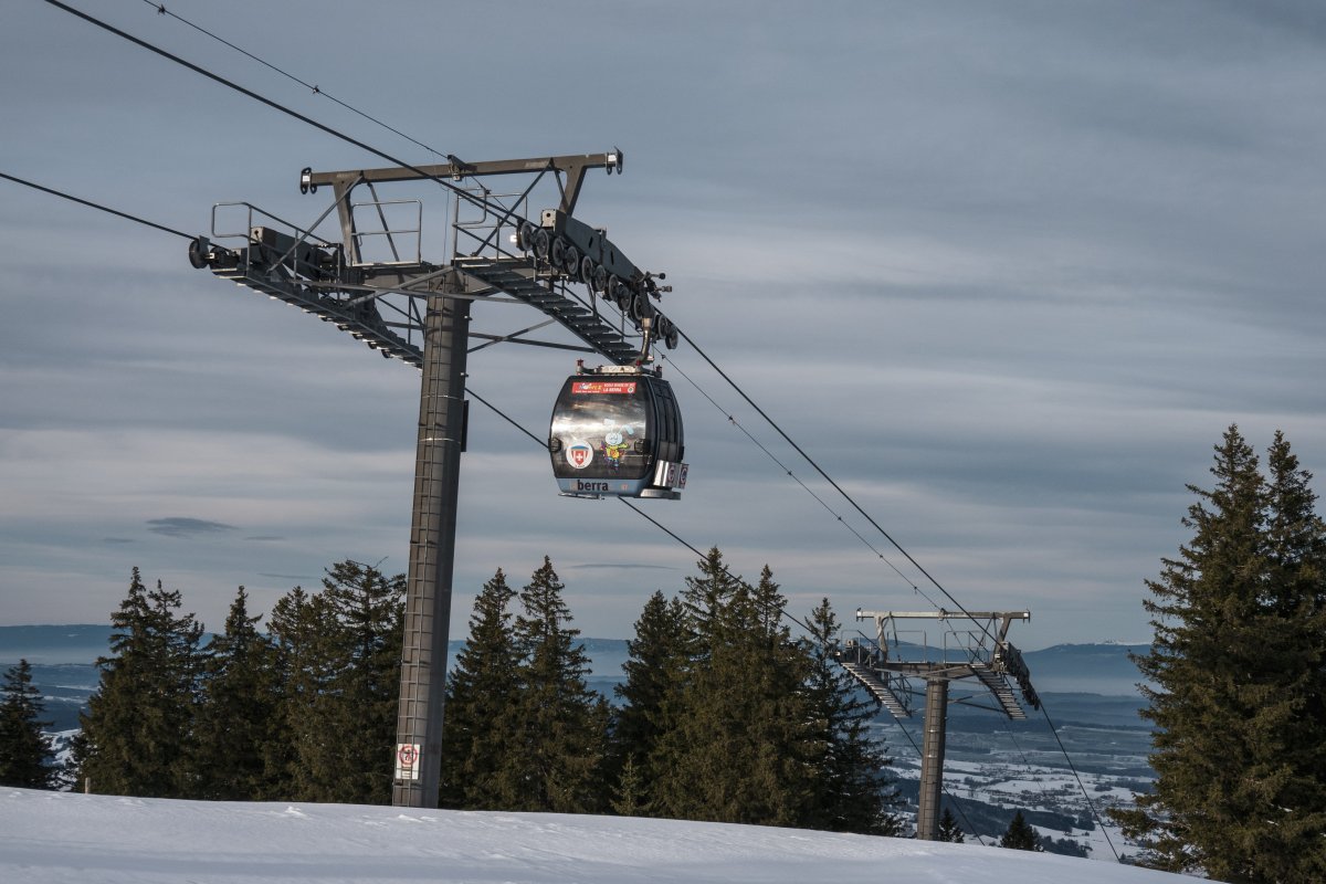 Eine Kombibahn von Bartholet erschliesst seit 2013 den höchsten Punkt des Skigebiets La Berra im Kanton Freiburg. Bei wenig Betrieb wird die Anlage als reine Kabinenbahn ohne Sessel betrieben.