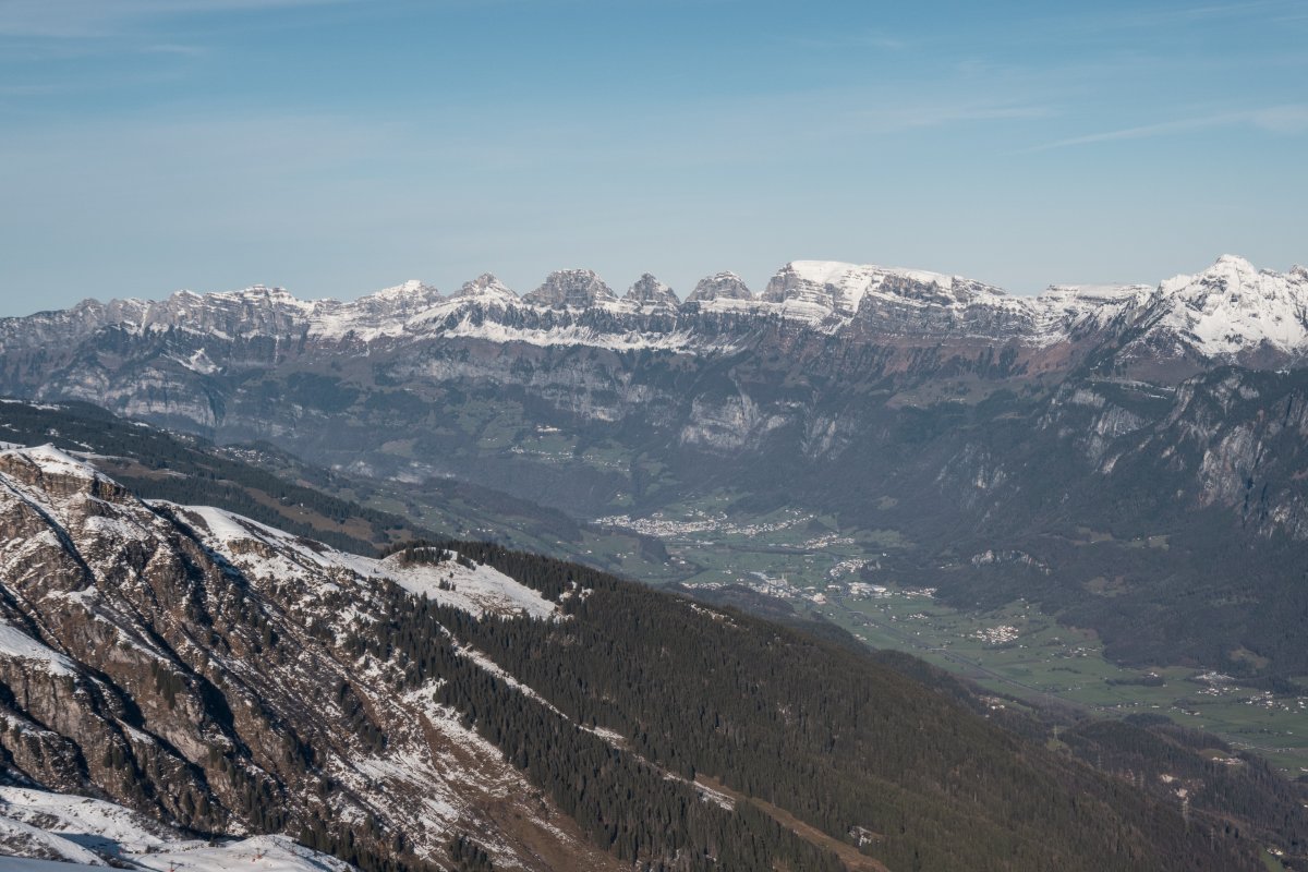 Panorama von Laufböden auf die Churfirsten, Dezember 2022