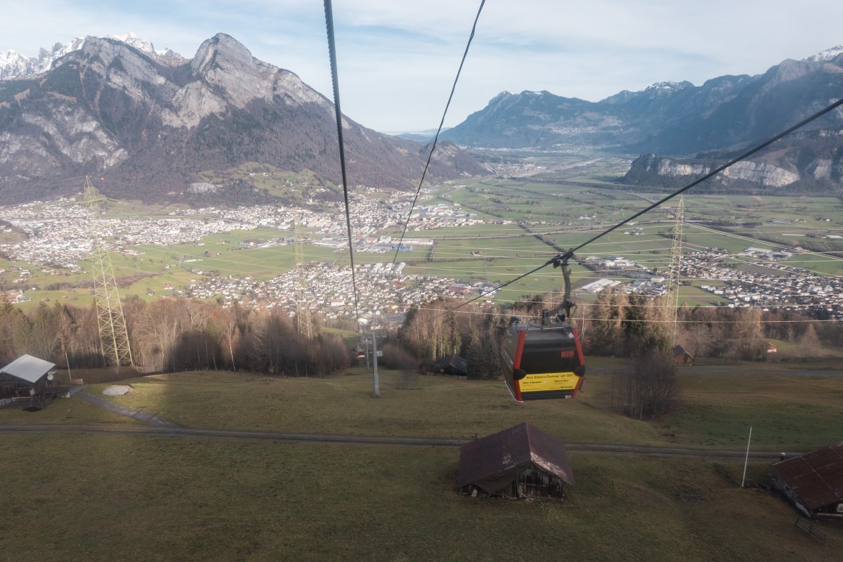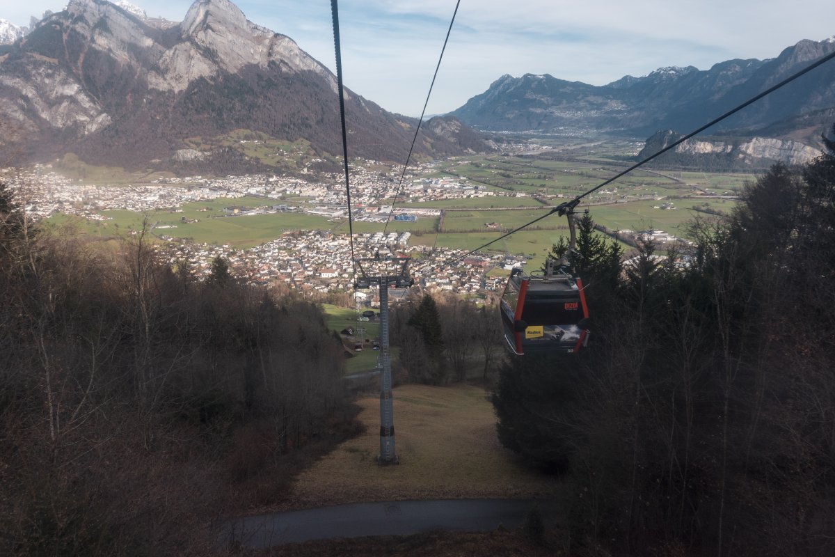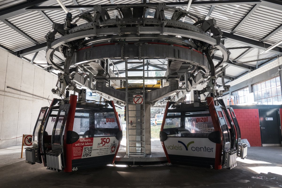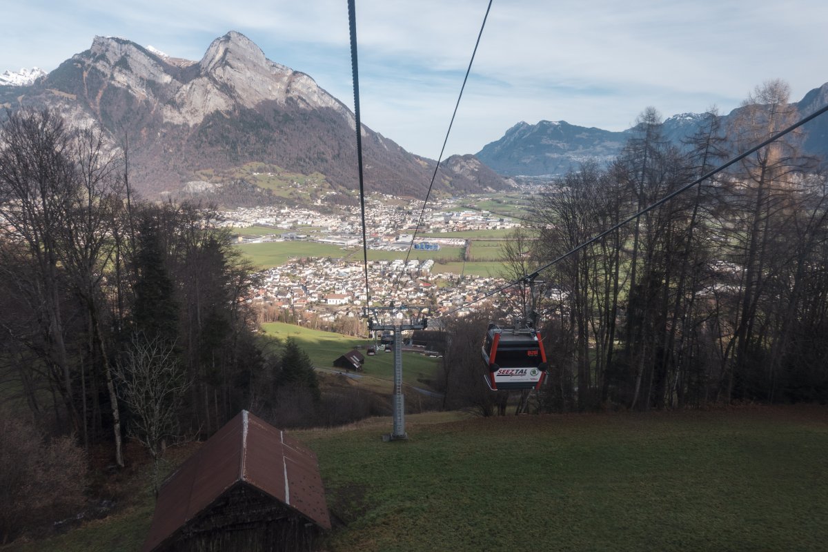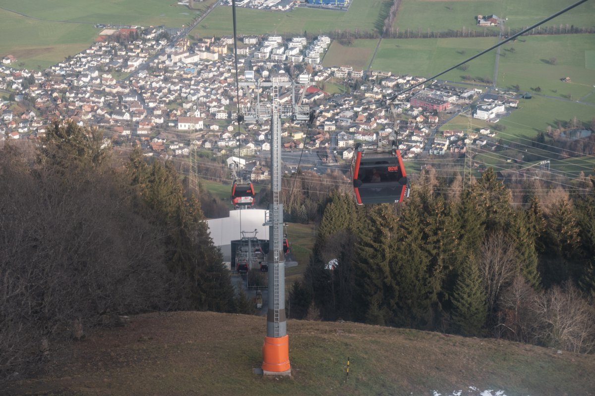 Zwischenstation der Kabinenbahn Wangs-Maienberg-Furt, Dezember 2022