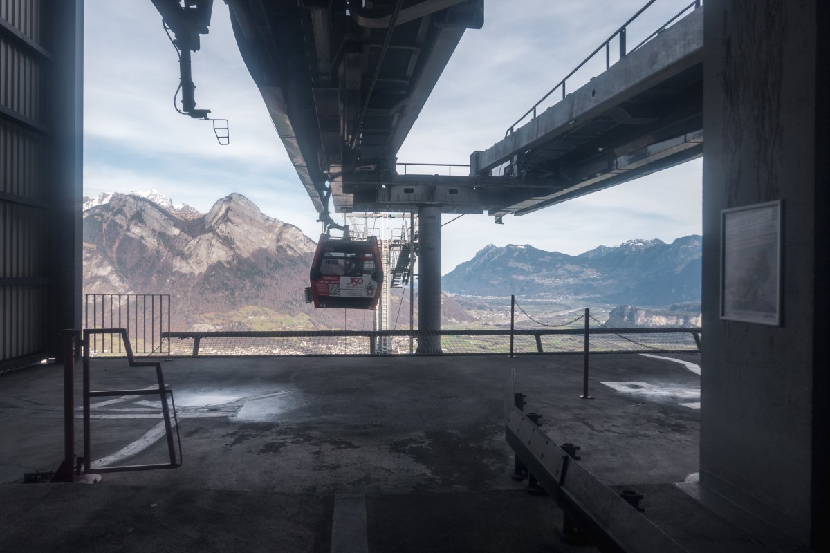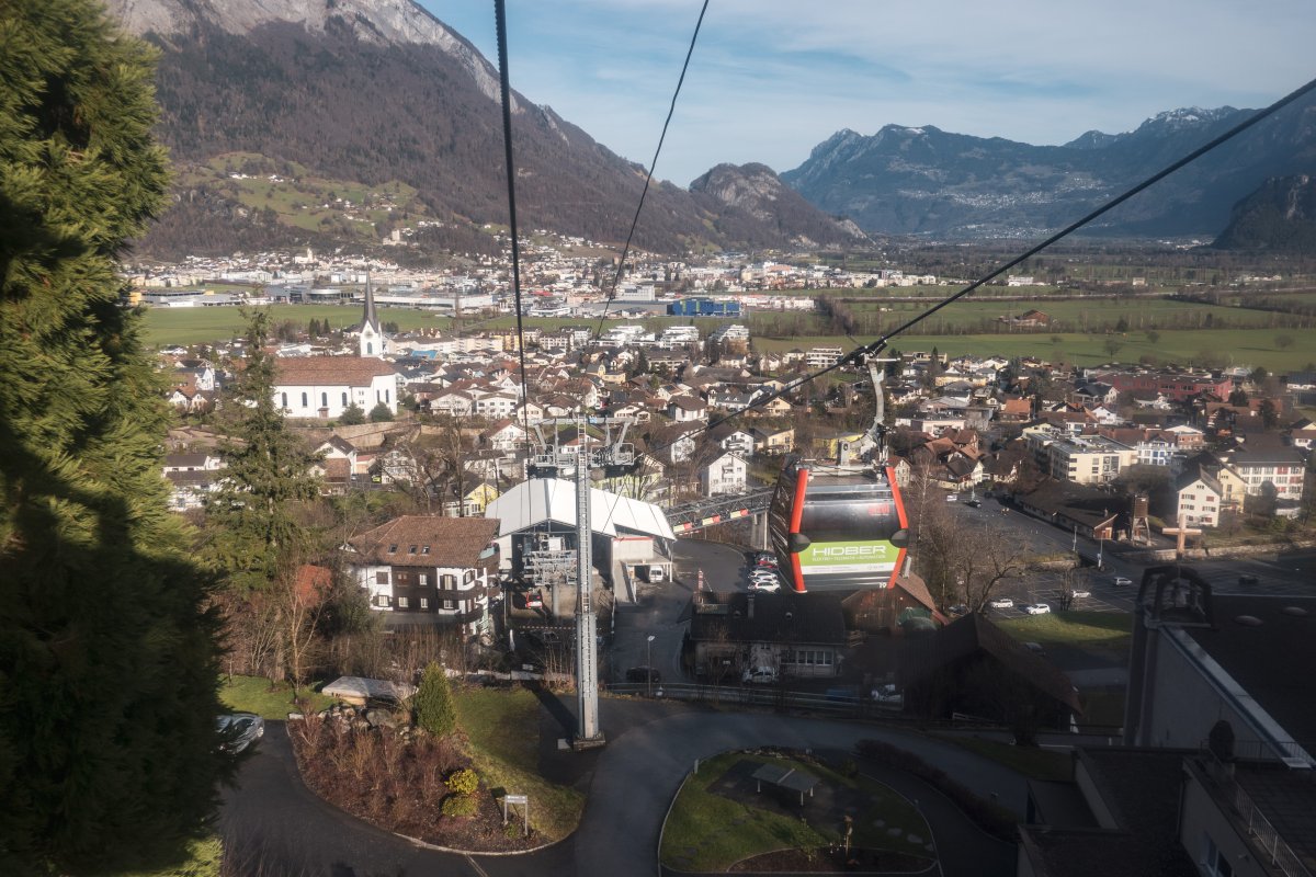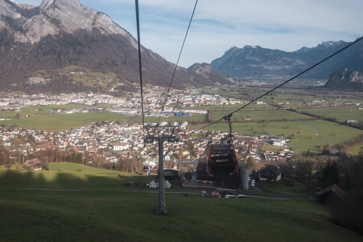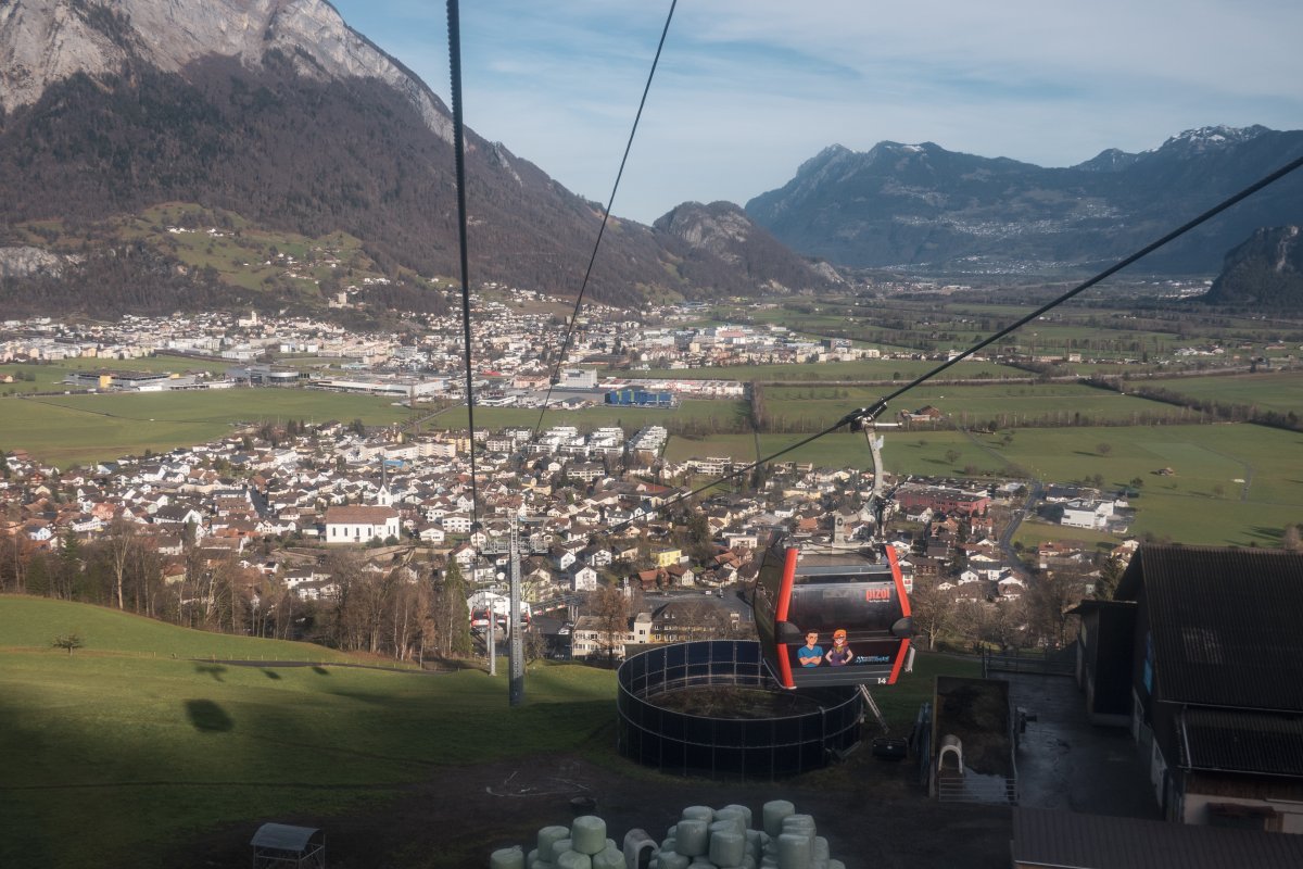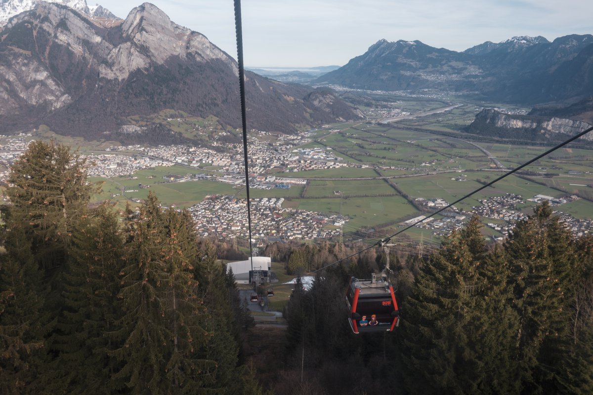Zwischenstation der Kabinenbahn Wangs-Maienberg-Furt, Dezember 2022