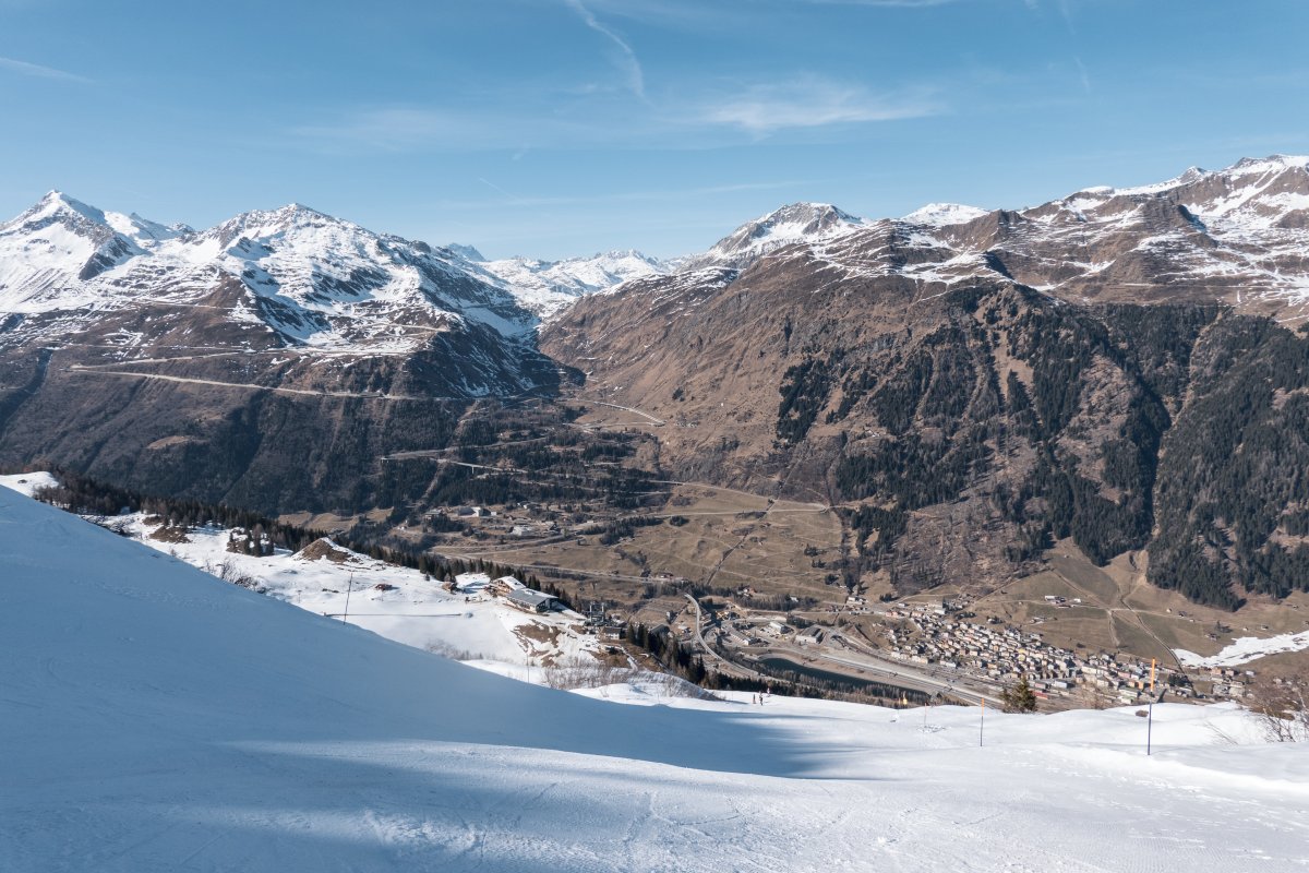 Nördlichstes Skigebiet des Tessins mit zwei Pendelbahnen, drei Schleppliften und einer der wenigen Von-Roll-Quattro-Sesselbahnen.