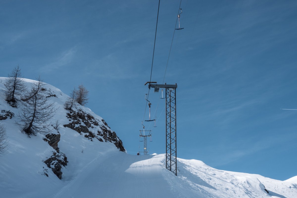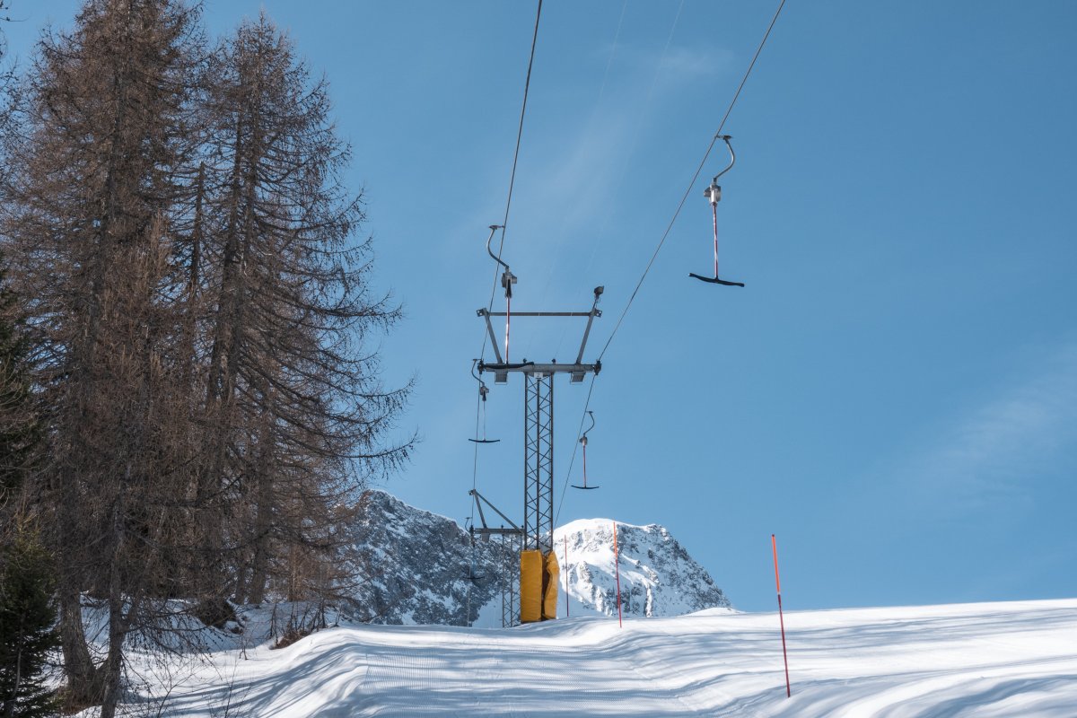 Talstation des Schlepplifts Pesciüm-Comascnè, März 2023