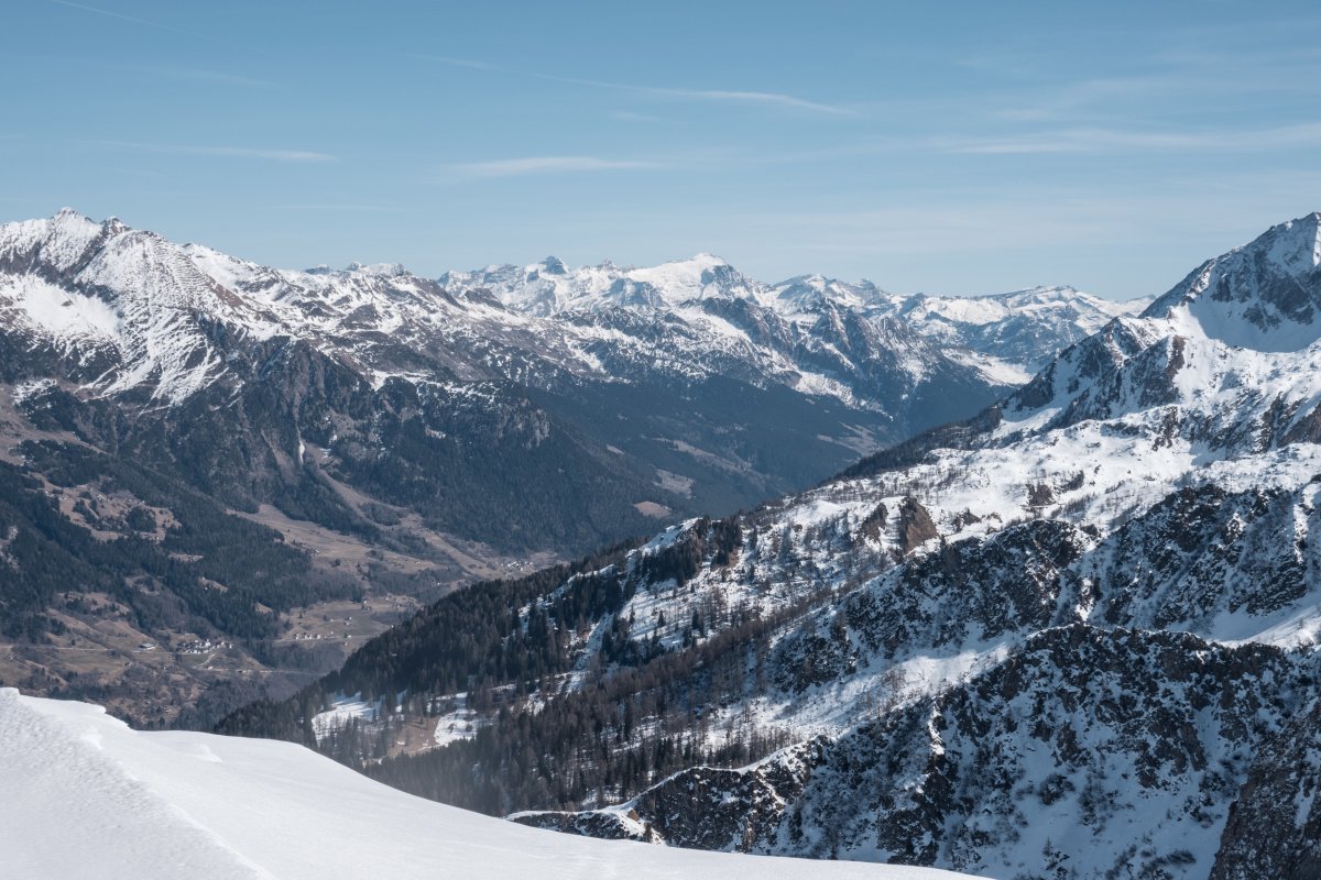 Panorama von der Bergstation der Sesselbahn Ravina-Varozzei, März 2023