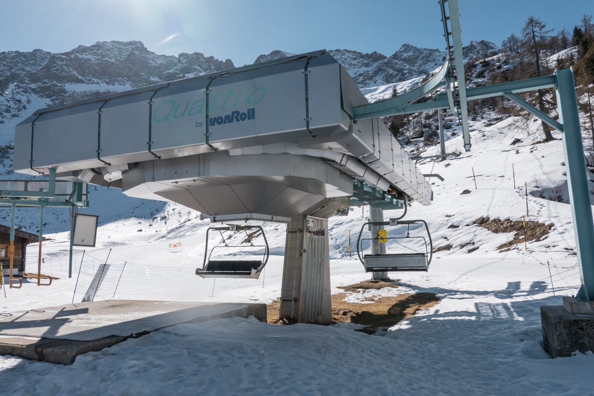 Talstation der Sesselbahn Ravina-Varozzei, März 2023