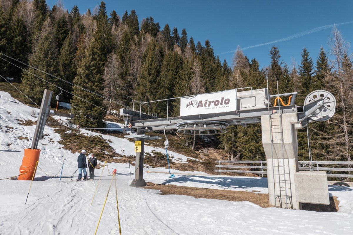 Nördlichstes Skigebiet des Tessins mit zwei Pendelbahnen, drei Schleppliften und einer der wenigen Von-Roll-Quattro-Sesselbahnen.