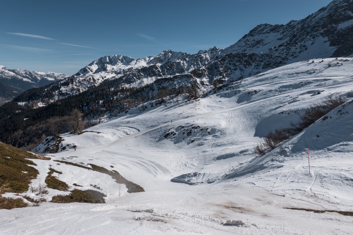 Abfahrt an der Sesselbahn Ravina-Varozzei, März 2023