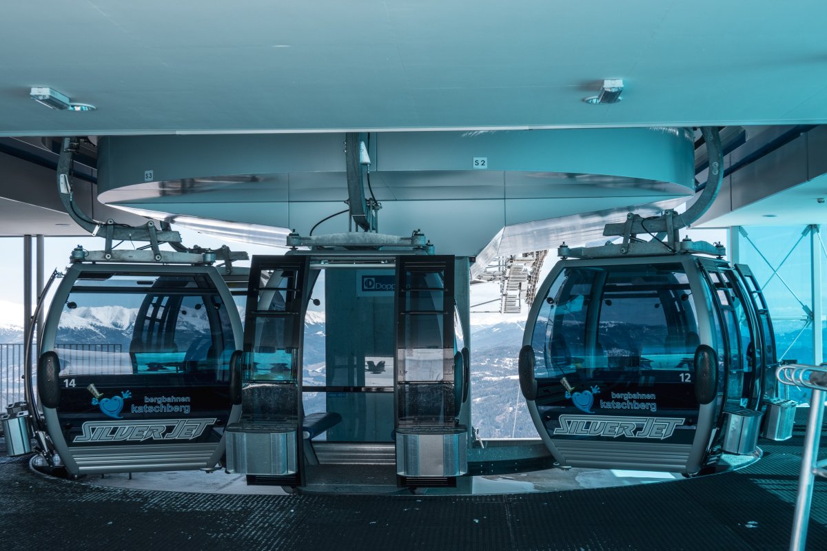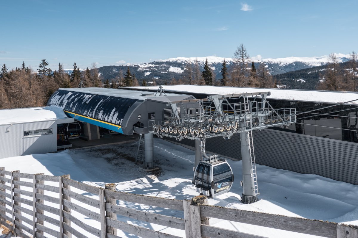 Abfahrt an der Kabinenbahn St. Margarethen-Aineck 2, März 2023