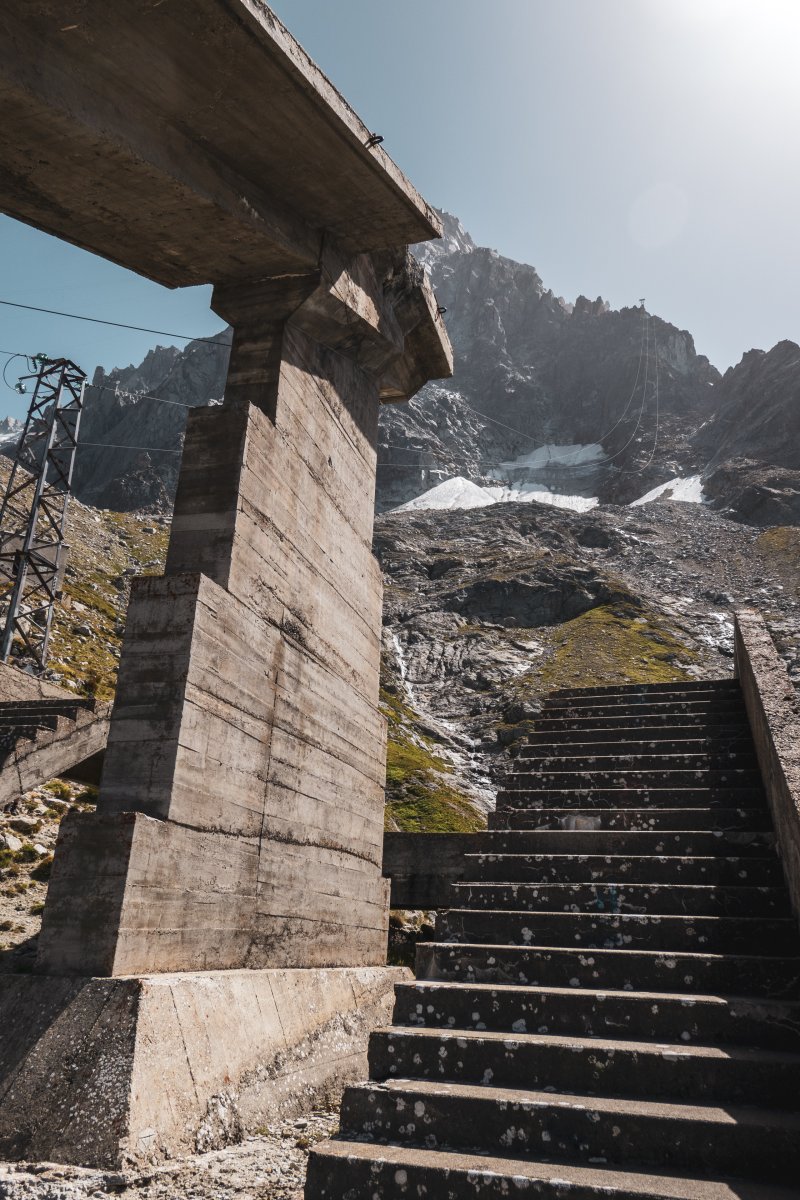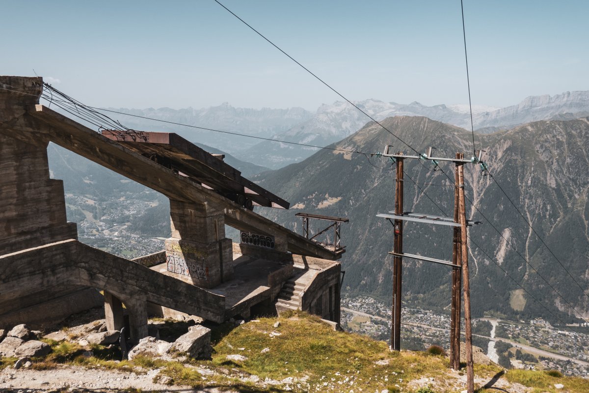 Eine Reise mit der Pendelbahn auf den Aussichtsgipfel Le Brévent oberhalb von Chamonix, mit der ältesten Zweiersesselbahn Frankreichs zum Glacier des Bossons und zu Fuss zu den Ruinen der Téléphérique des Glaciers an der Aiguille du Midi.