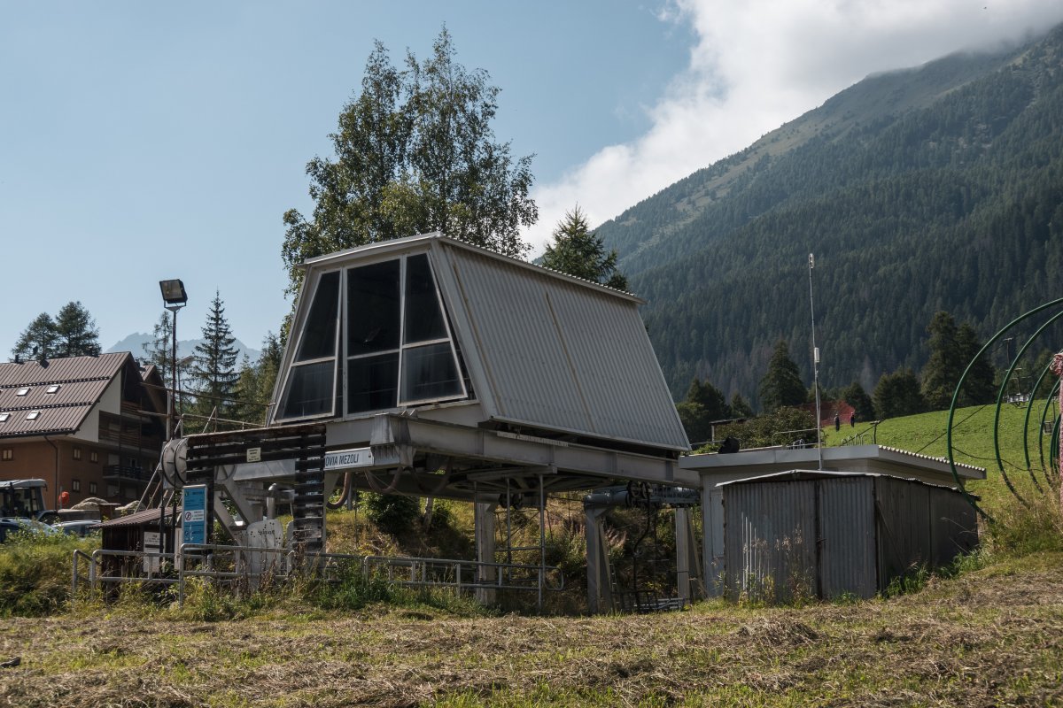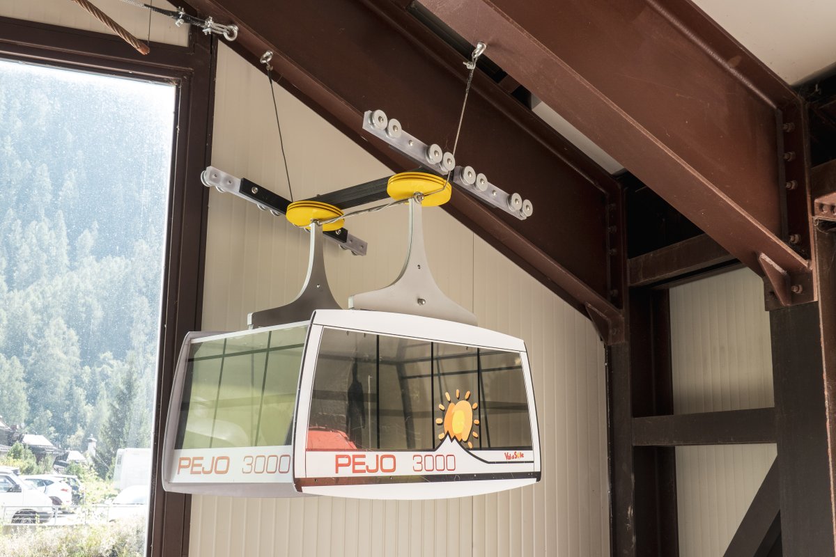 Kabine des Vorgängers der Kabinenbahn Peio-Tarlenta, September 2023