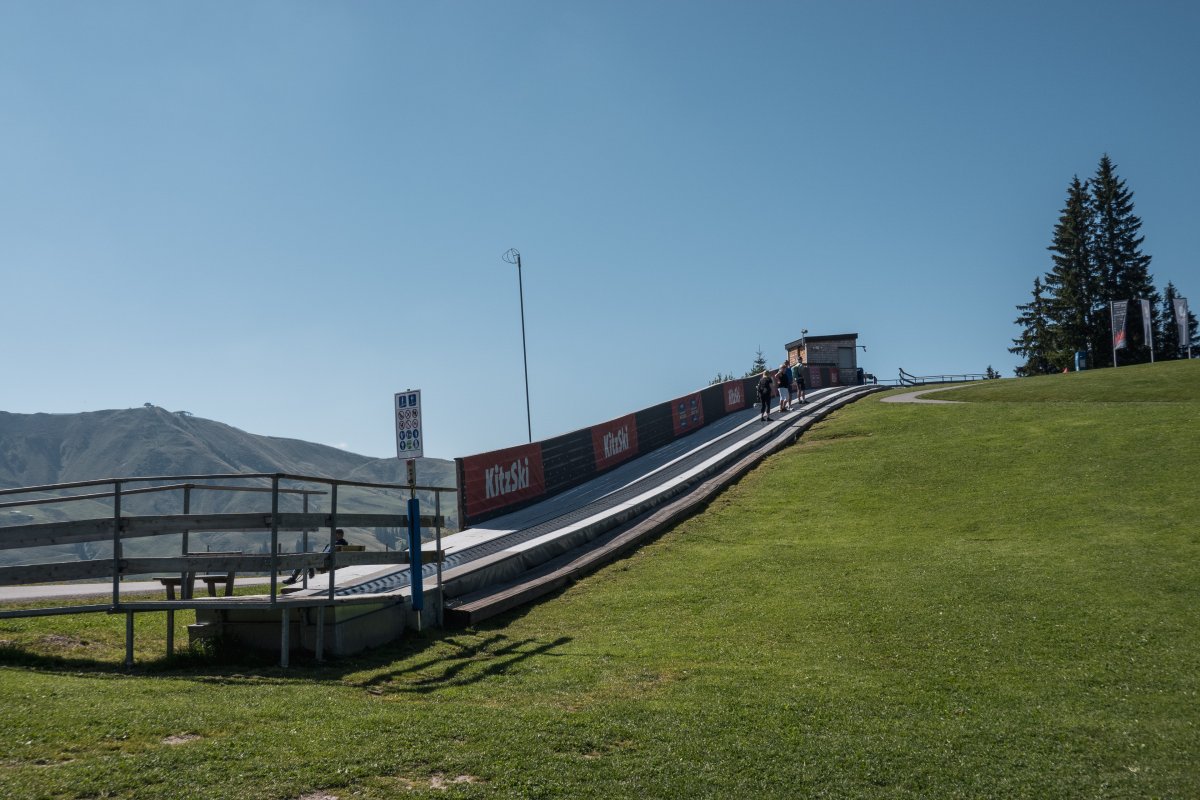 Förderband zum Start der Streiff-Abfahrt am Hahnenkamm, September 2023