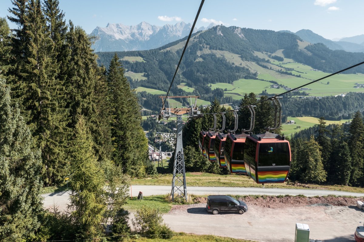 Bergstation der Gruppenumlaufbahn Fieberbrunn-Streuböden, September 2023