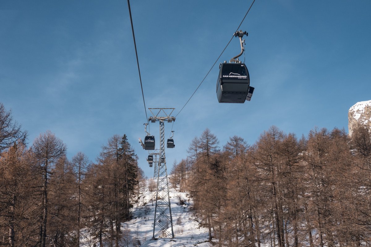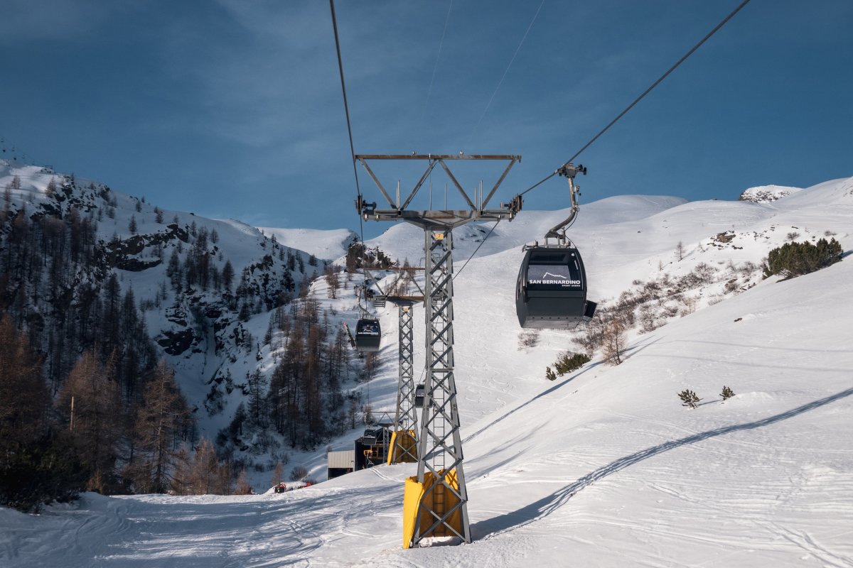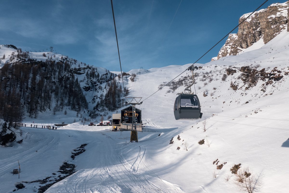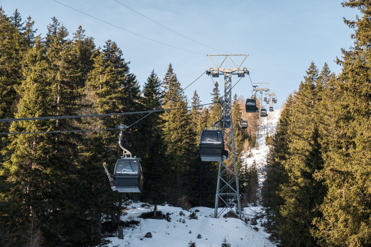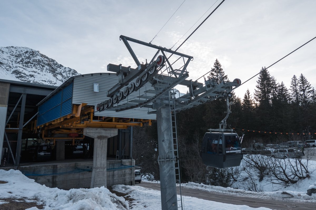 Nach zehn Jahren Stillstand nehmen die Seilbahnen in San Bernardino im Dezember 2023 den Betrieb wieder auf. Impressionen vom ersten Betriebstag an der Kabinenbahn Confin Basso, der Sesselbahn Pan de Zucher und dem Schlepplift Lares.