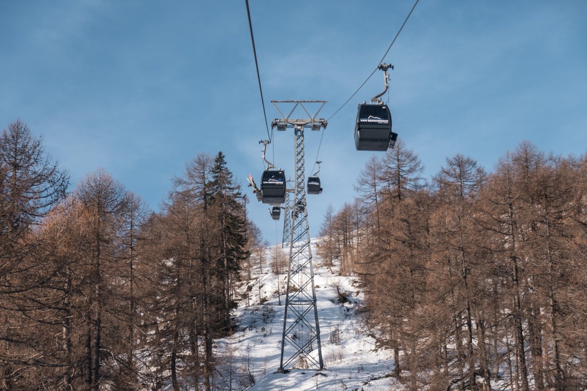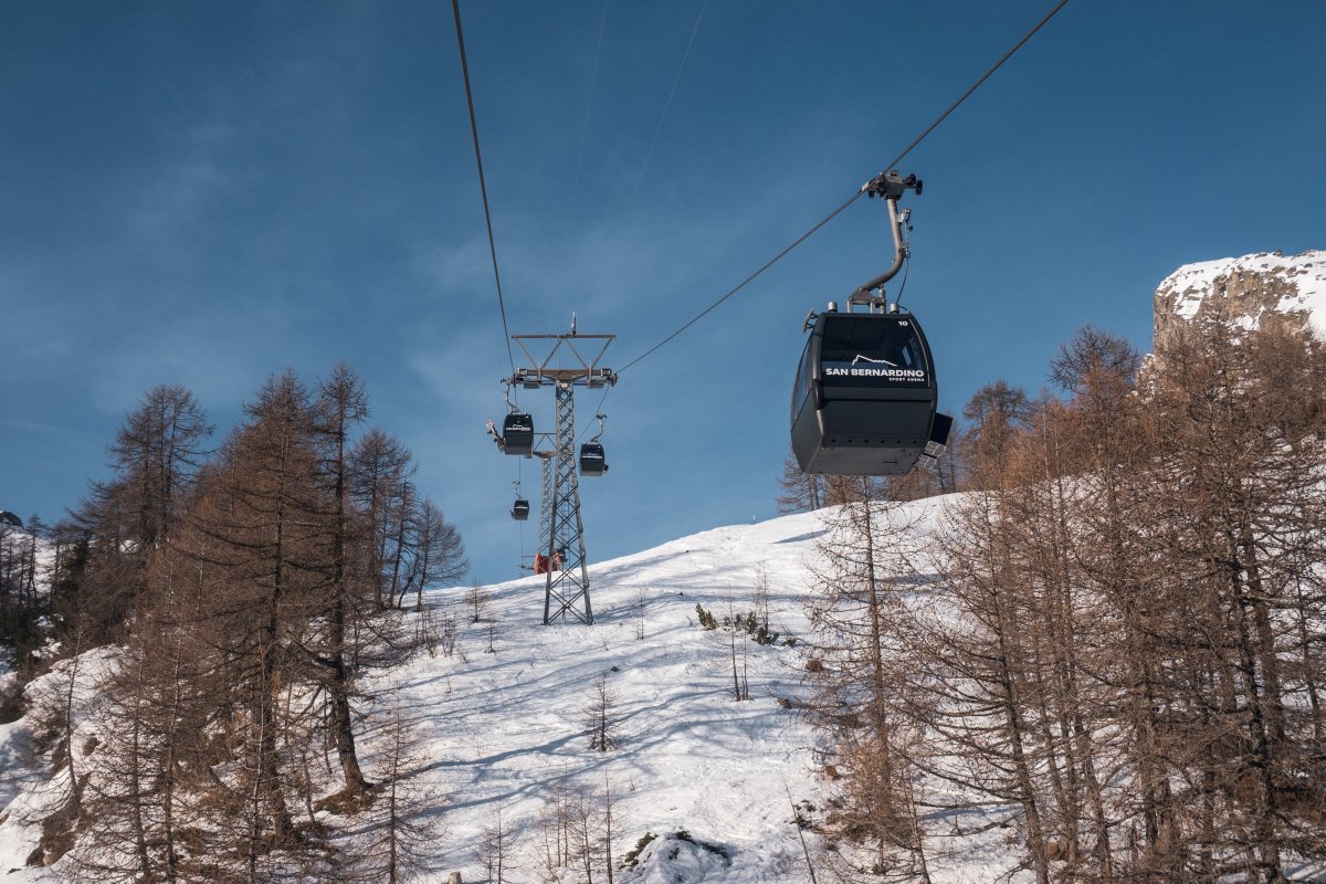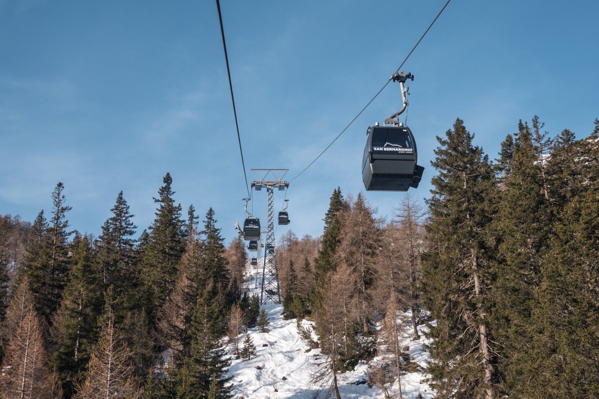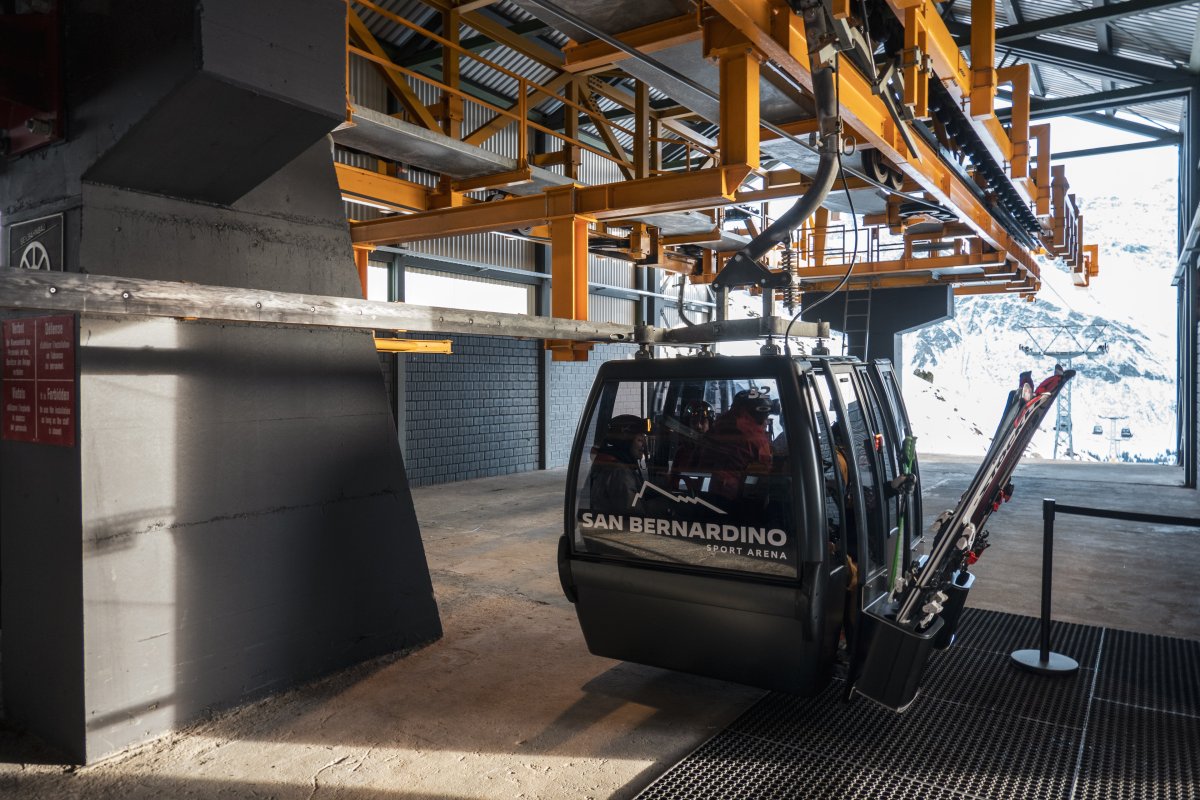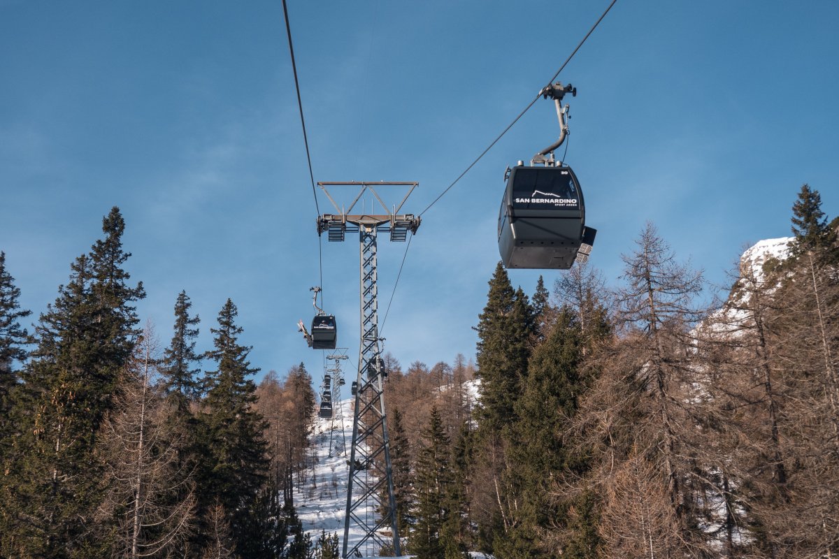 Nach zehn Jahren Stillstand nehmen die Seilbahnen in San Bernardino im Dezember 2023 den Betrieb wieder auf. Impressionen vom ersten Betriebstag an der Kabinenbahn Confin Basso, der Sesselbahn Pan de Zucher und dem Schlepplift Lares.