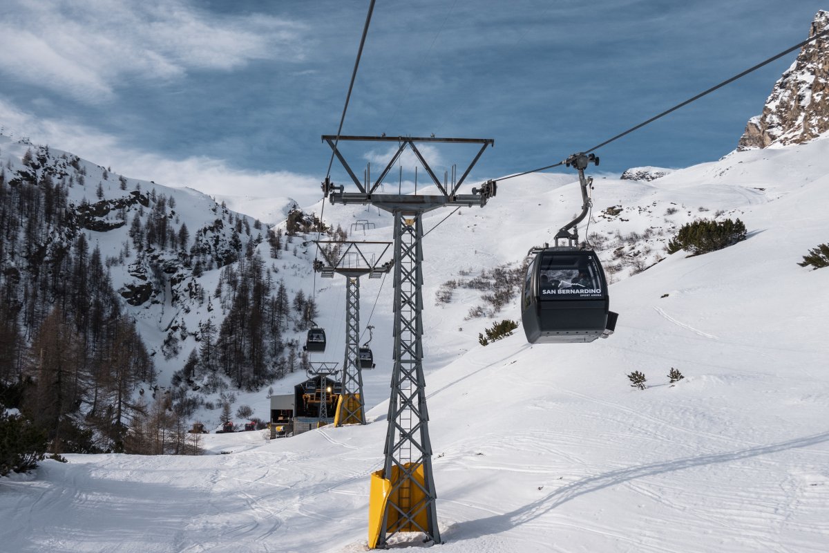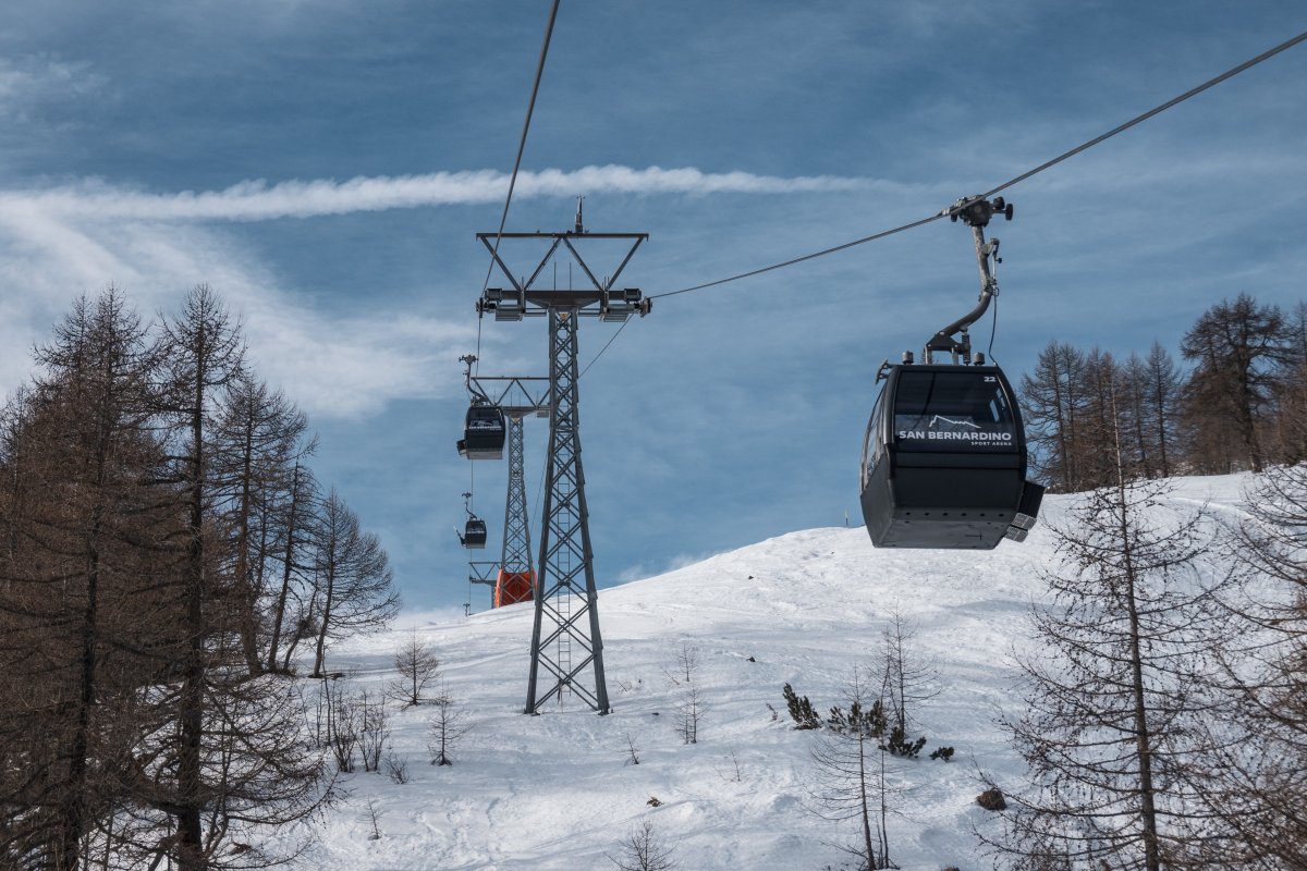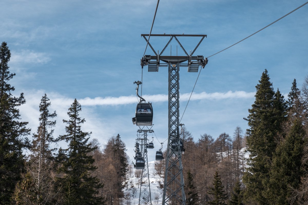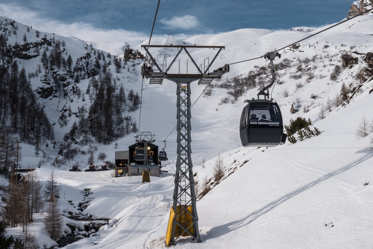 Nach zehn Jahren Stillstand nehmen die Seilbahnen in San Bernardino im Dezember 2023 den Betrieb wieder auf. Impressionen vom ersten Betriebstag an der Kabinenbahn Confin Basso, der Sesselbahn Pan de Zucher und dem Schlepplift Lares.