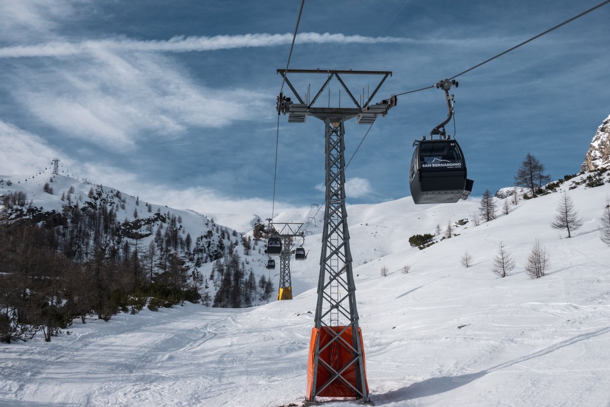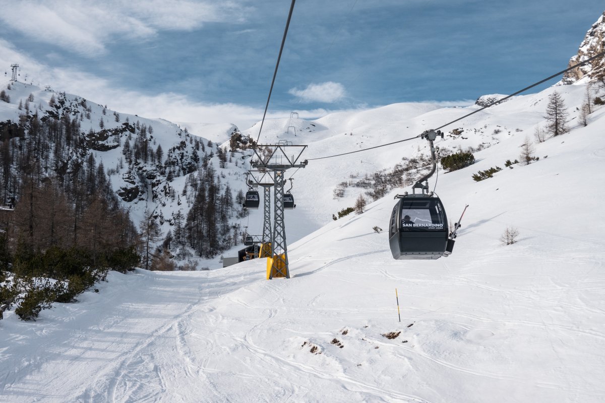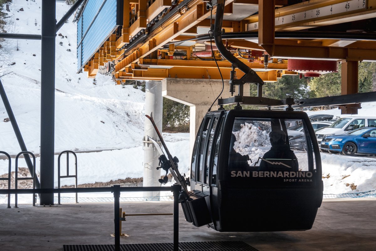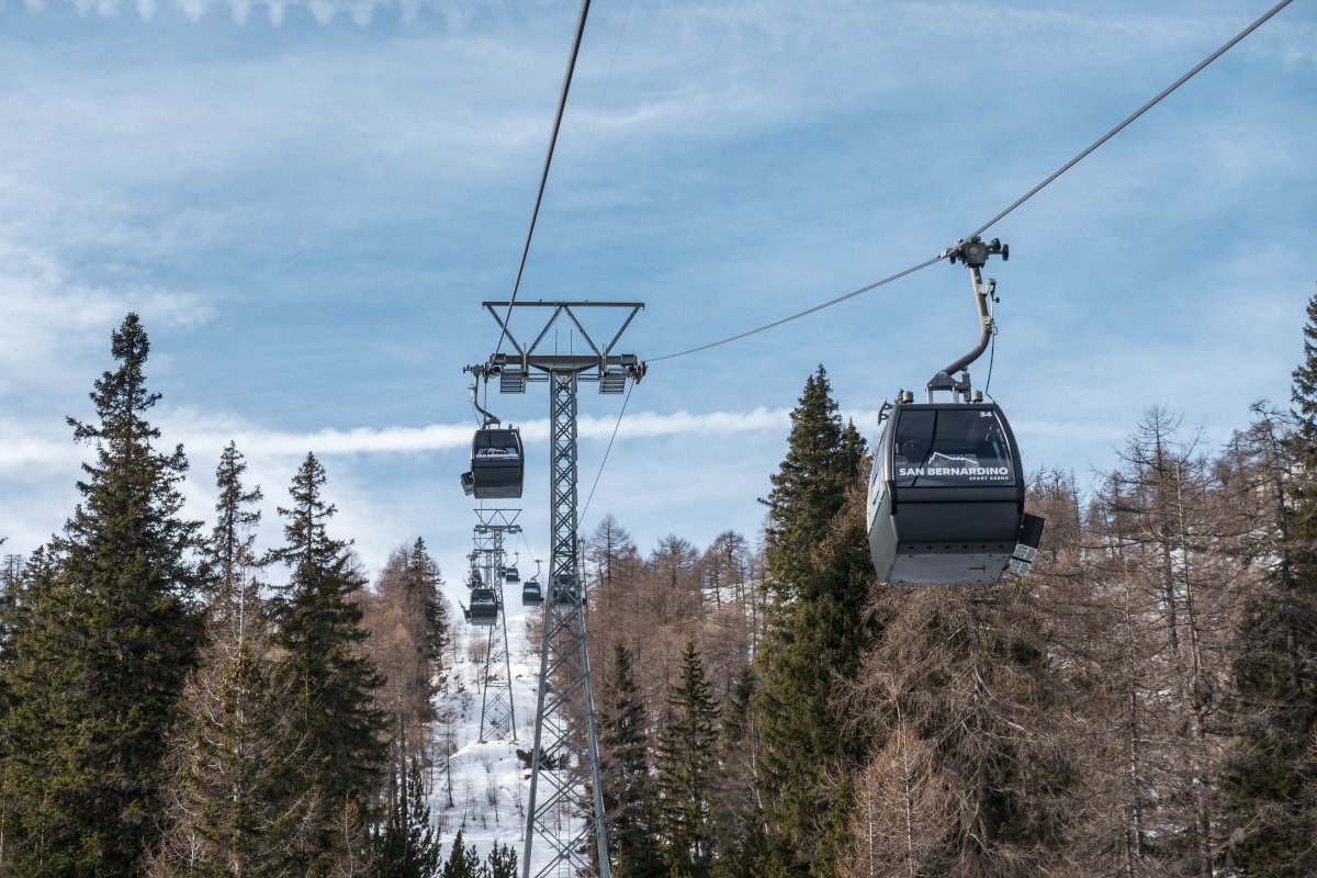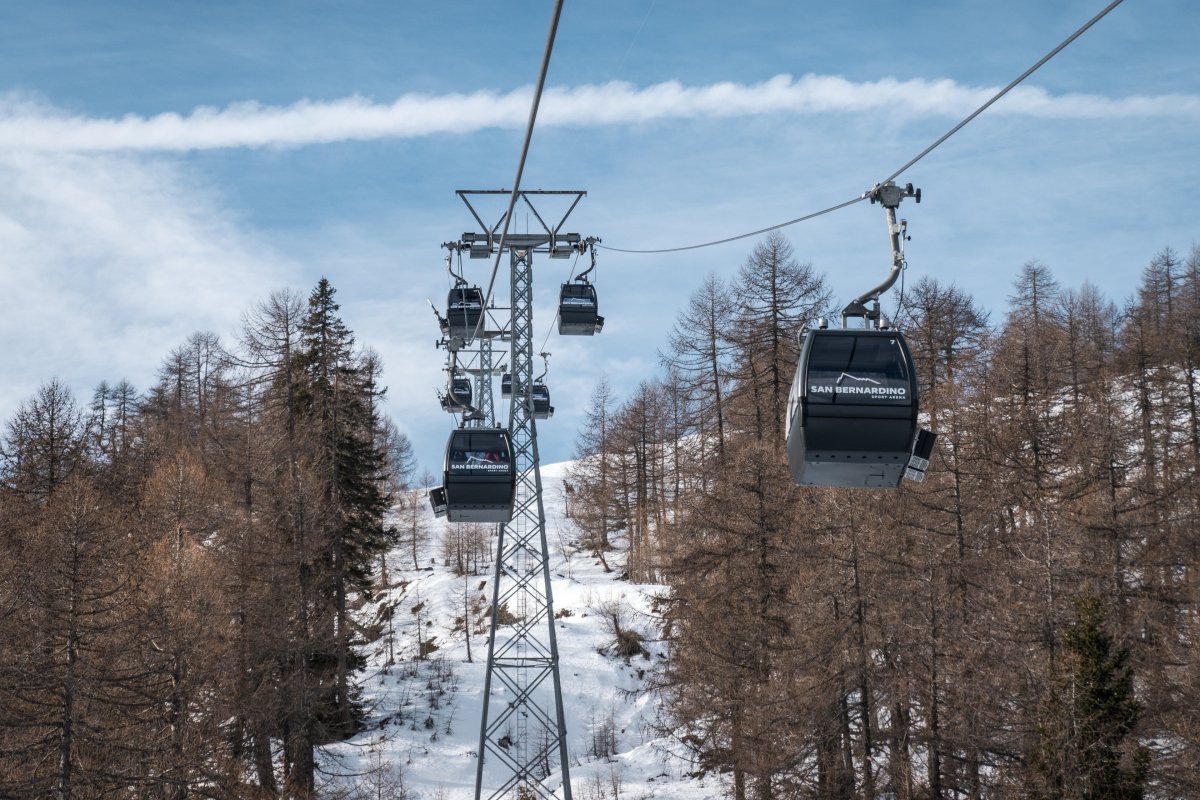 Nach zehn Jahren Stillstand nehmen die Seilbahnen in San Bernardino im Dezember 2023 den Betrieb wieder auf. Impressionen vom ersten Betriebstag an der Kabinenbahn Confin Basso, der Sesselbahn Pan de Zucher und dem Schlepplift Lares.