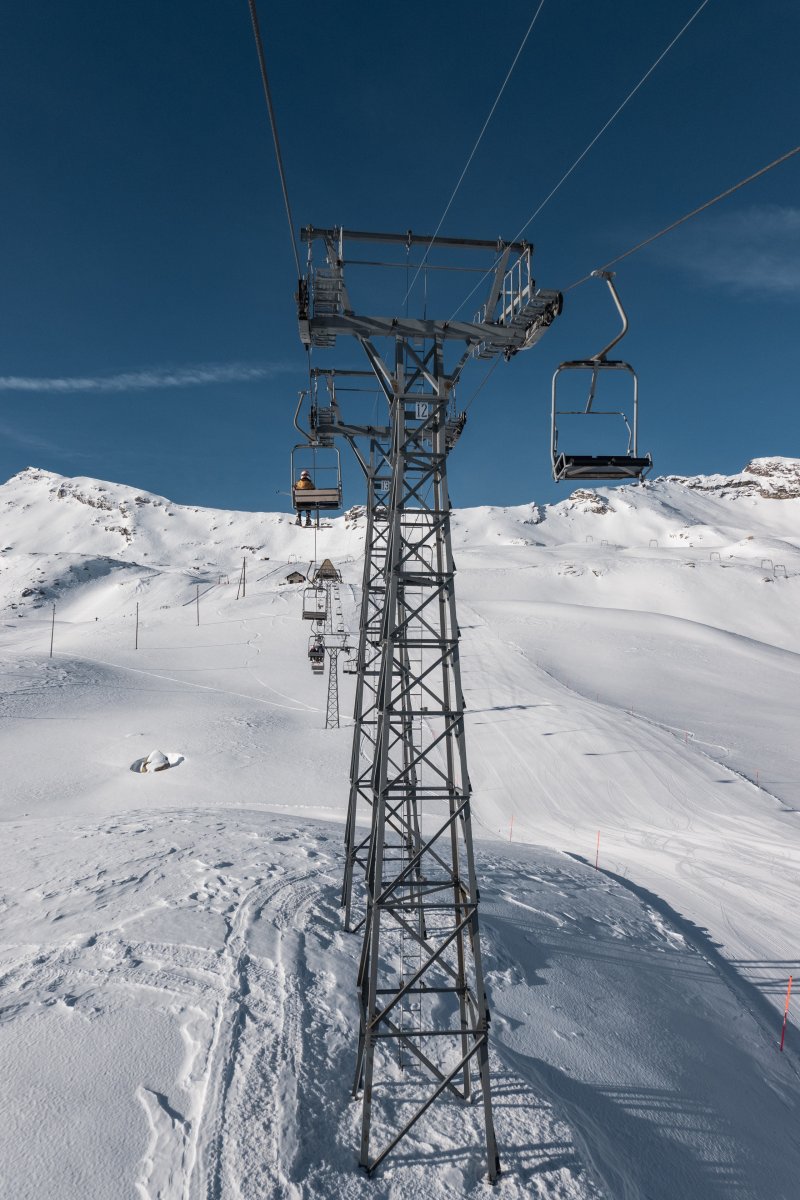Nach zehn Jahren Stillstand nehmen die Seilbahnen in San Bernardino im Dezember 2023 den Betrieb wieder auf. Impressionen vom ersten Betriebstag an der Kabinenbahn Confin Basso, der Sesselbahn Pan de Zucher und dem Schlepplift Lares.