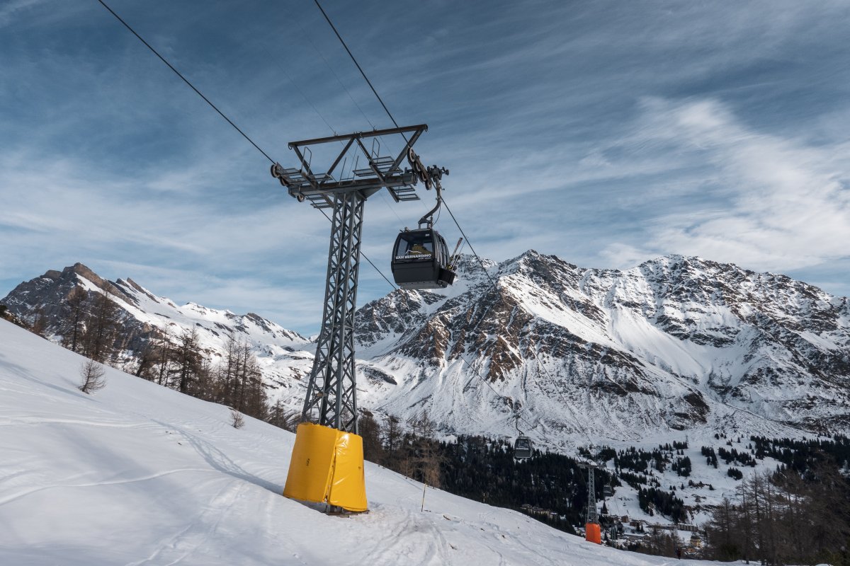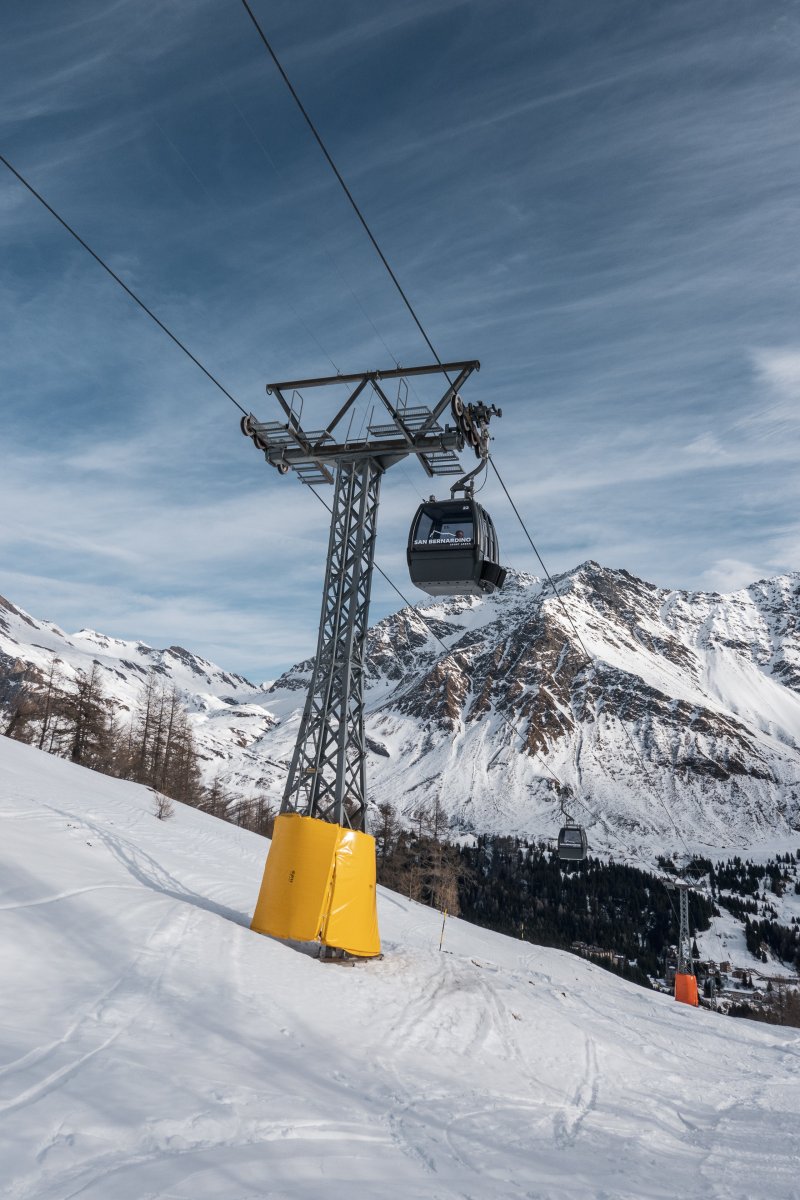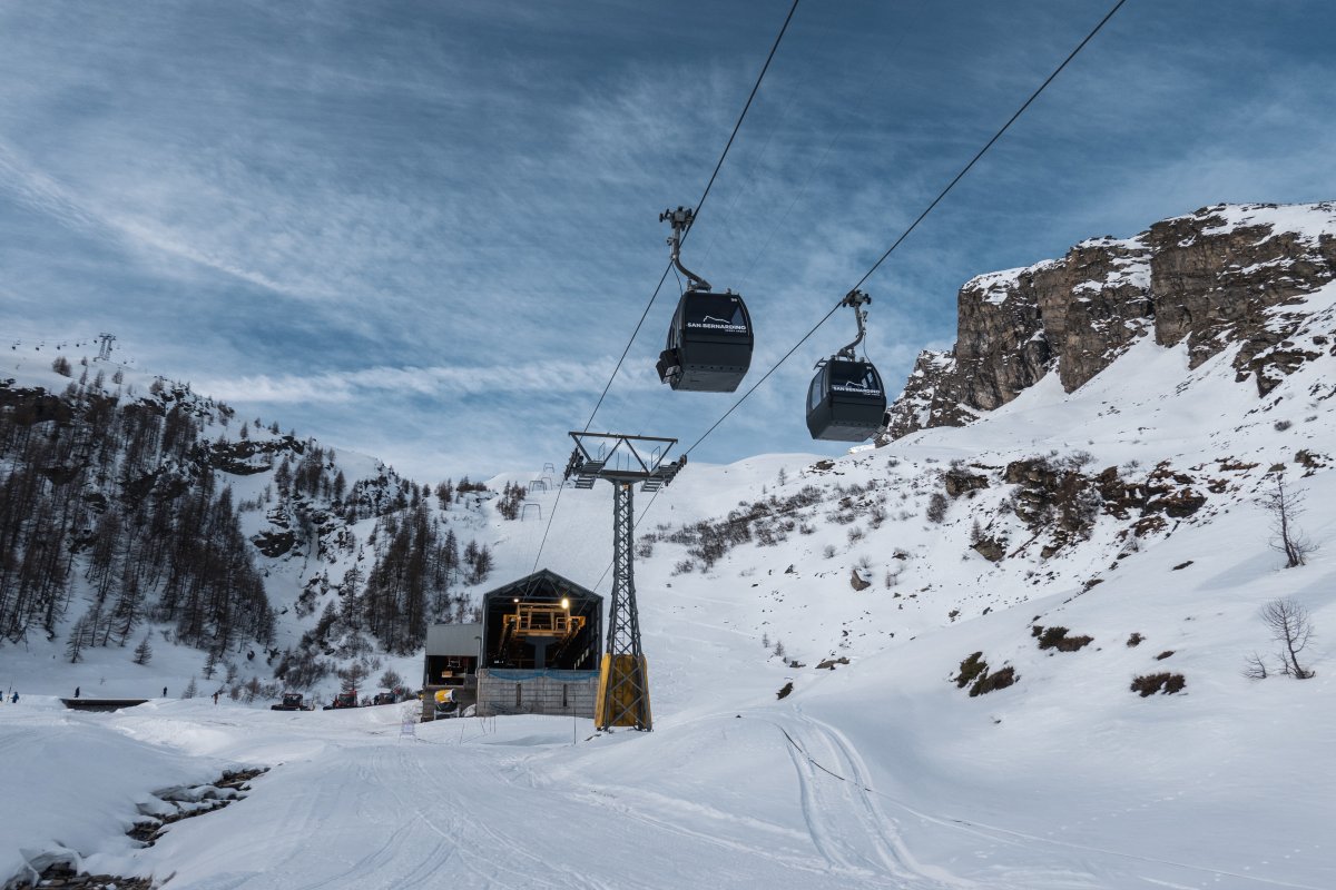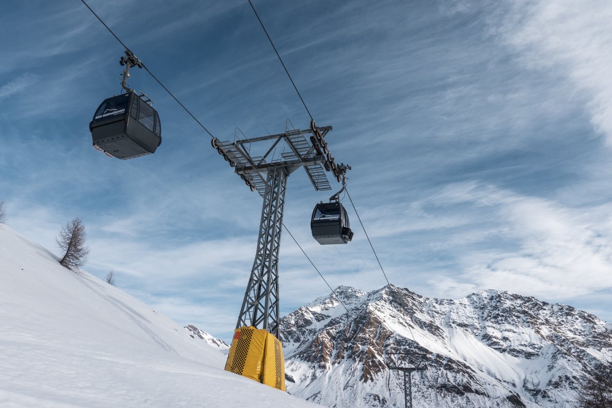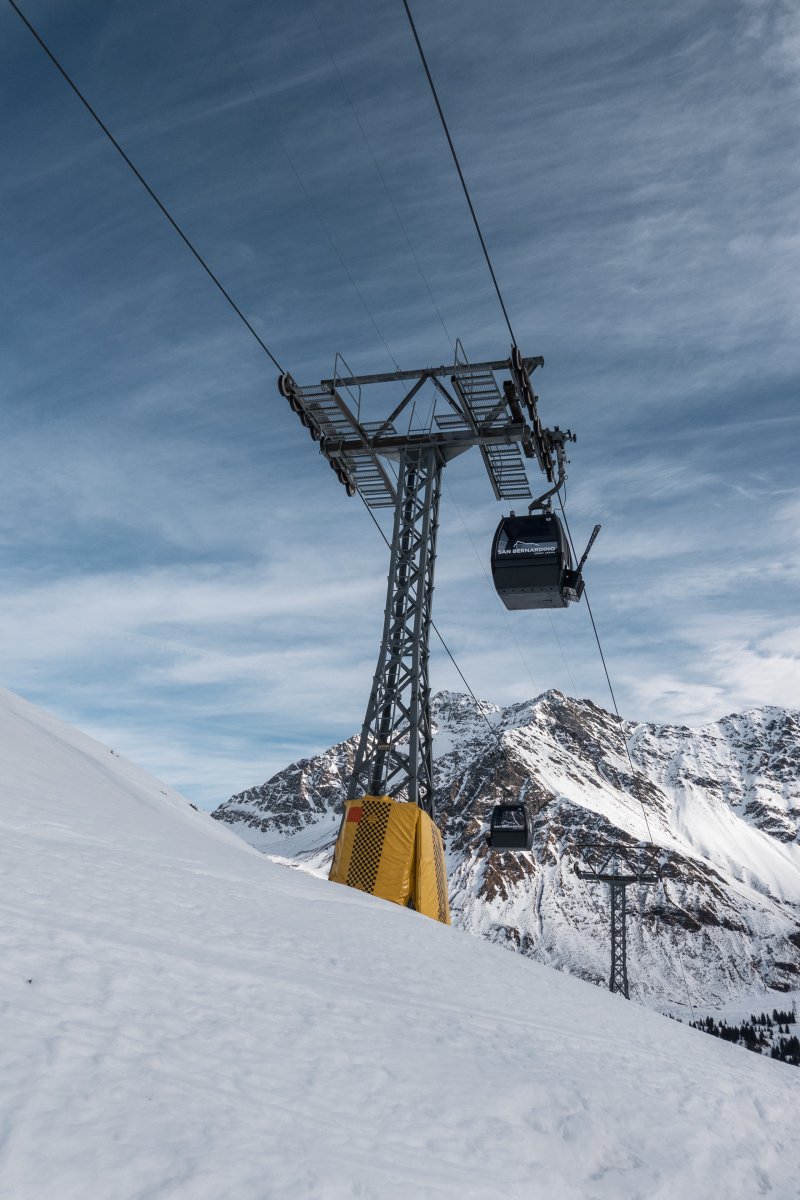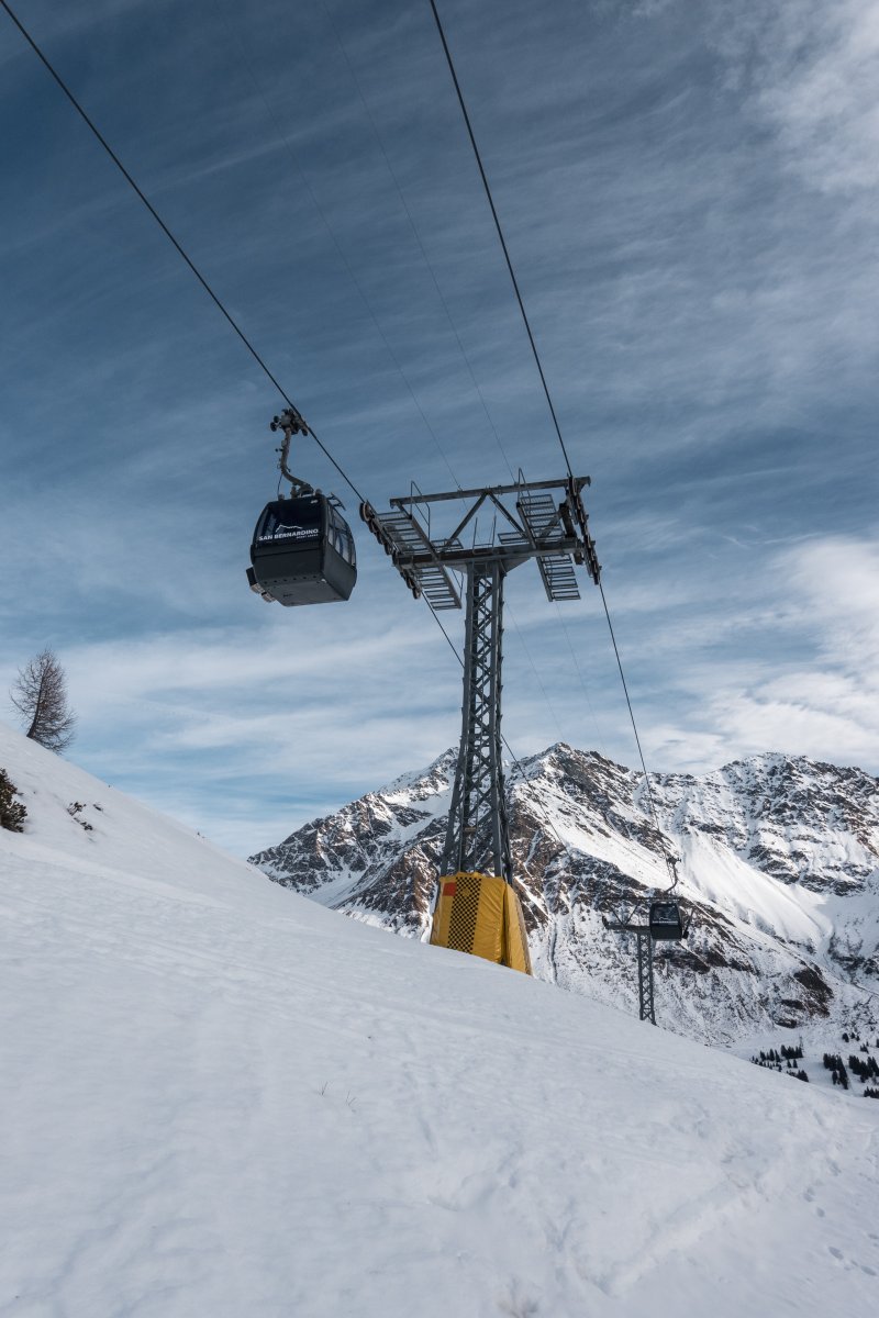 Nach zehn Jahren Stillstand nehmen die Seilbahnen in San Bernardino im Dezember 2023 den Betrieb wieder auf. Impressionen vom ersten Betriebstag an der Kabinenbahn Confin Basso, der Sesselbahn Pan de Zucher und dem Schlepplift Lares.