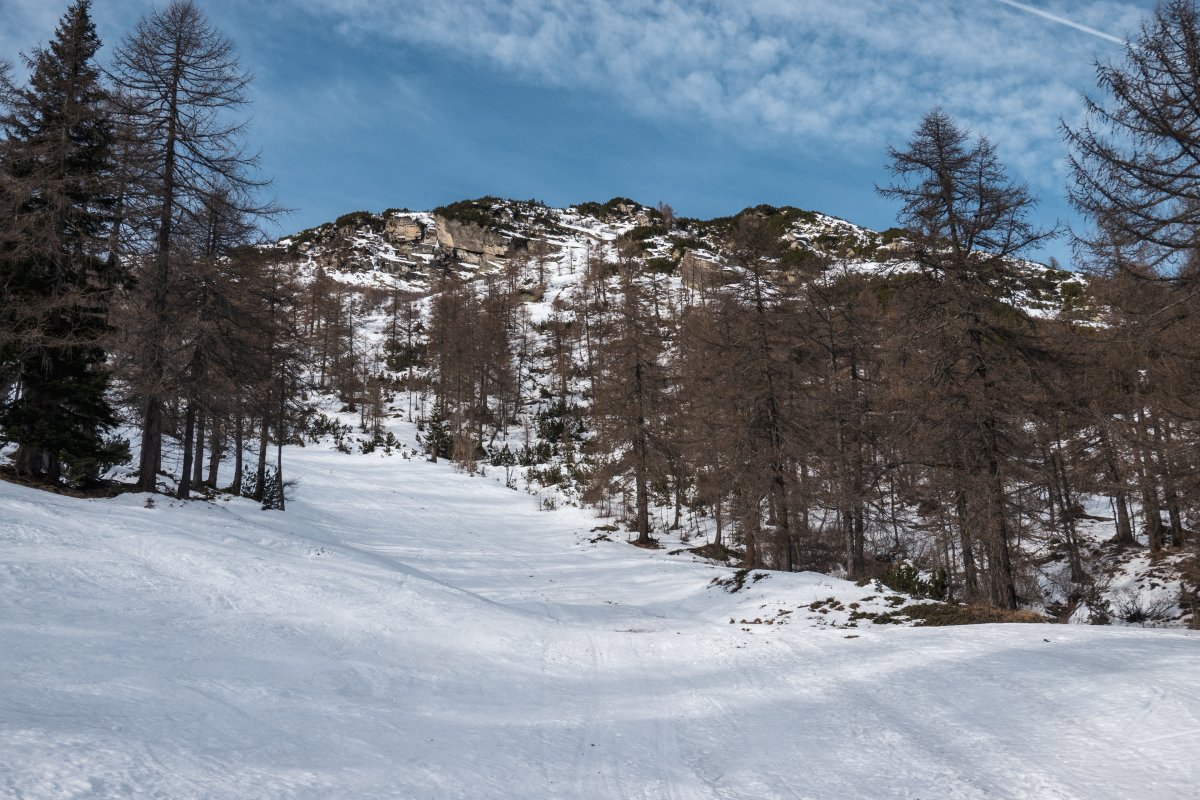 Abfahrt am Schlepplift Lares, Dezember 2023