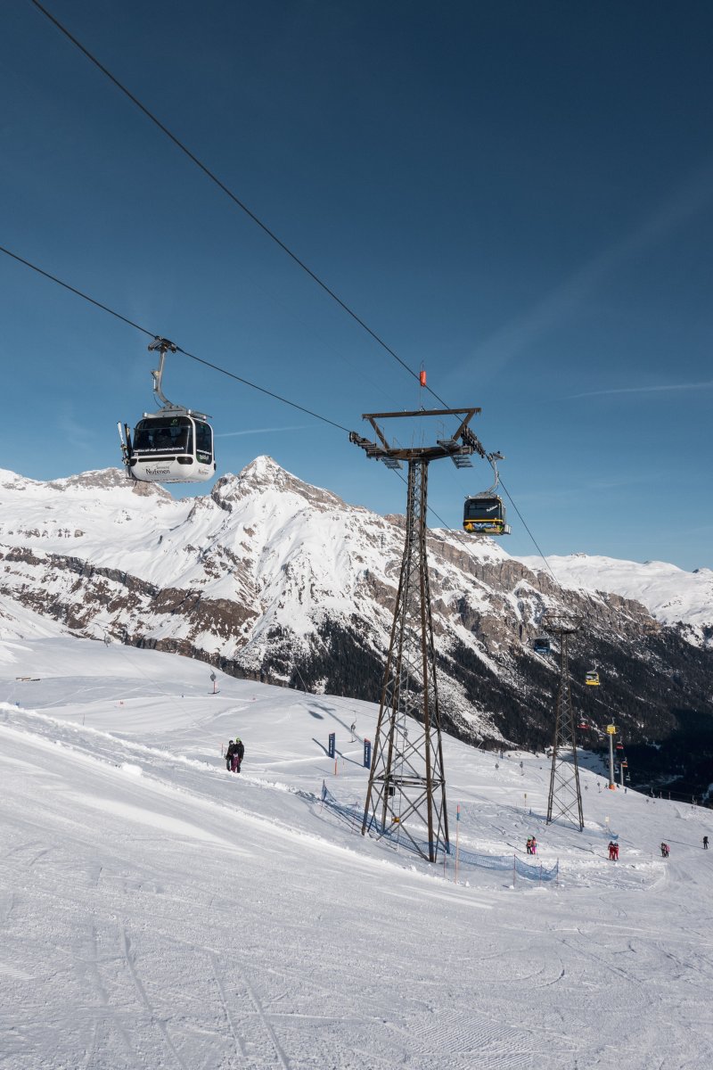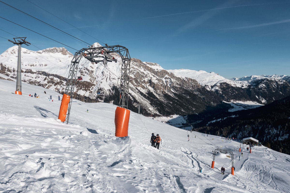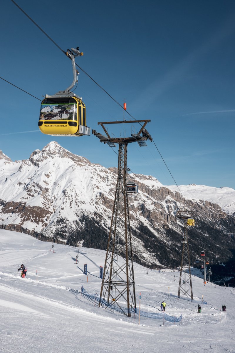 Zwei Kabinenbahnen, zwei Sesselbahnen und ein nostalgischer Kurzbügel-Schlepplift erschliessen die Pisten rund um die Tanatzhöhi und die Tamboalp oberhalb von Splügen.