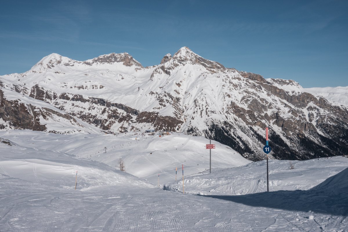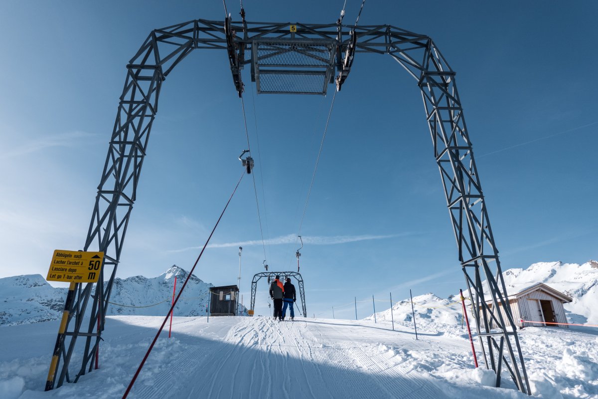 Zwei Kabinenbahnen, zwei Sesselbahnen und ein nostalgischer Kurzbügel-Schlepplift erschliessen die Pisten rund um die Tanatzhöhi und die Tamboalp oberhalb von Splügen.