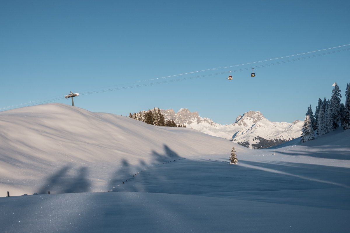 Skigebiet Grüsch-Danusa mit zwei Kabinenbahnen von Leitner, Schleppliften von Leitner und Städeli, sowie einer Sesselbahn von Baco-Poma.