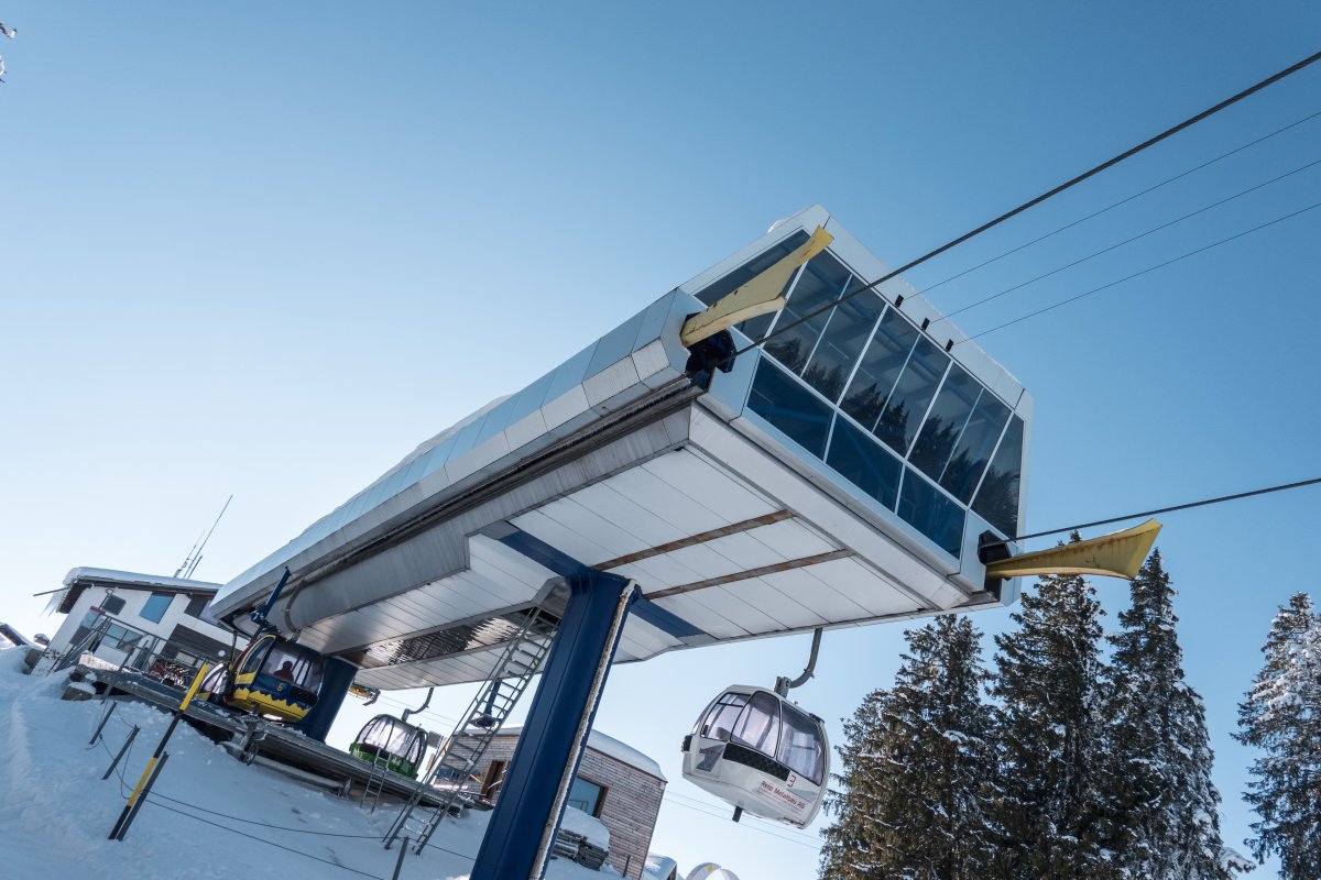 Bergstation der Kabinenbahn Cavadura-Schwänzelegg, Januar 2024