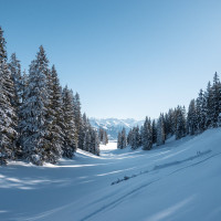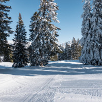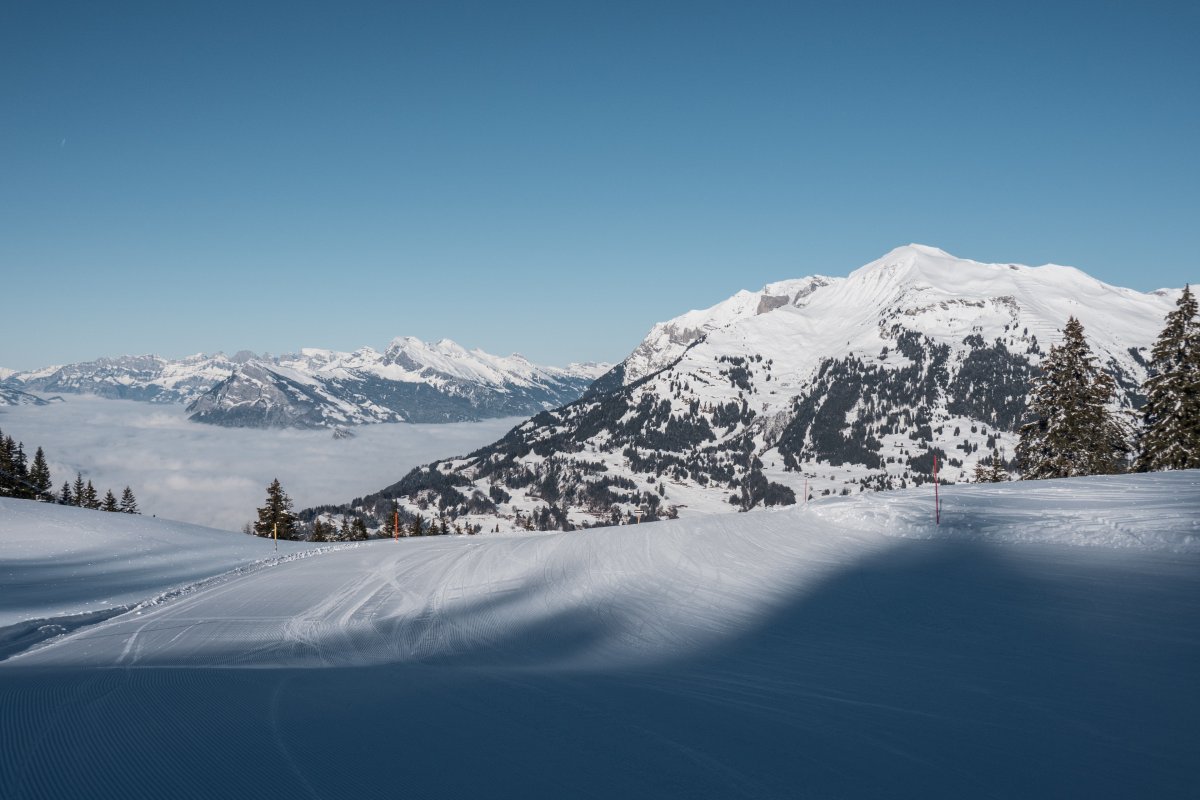 Abfahrt an der Kabinenbahn Cavadura-Schwänzelegg, Januar 2024