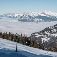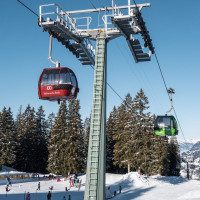 Skigebiet Grüsch-Danusa mit zwei Kabinenbahnen von Leitner, Schleppliften von Leitner und Städeli, sowie einer Sesselbahn von Baco-Poma.