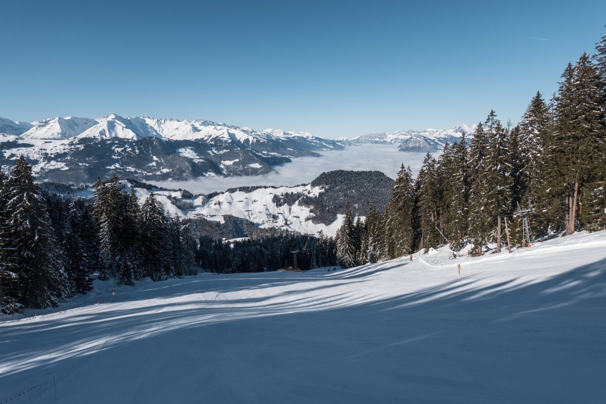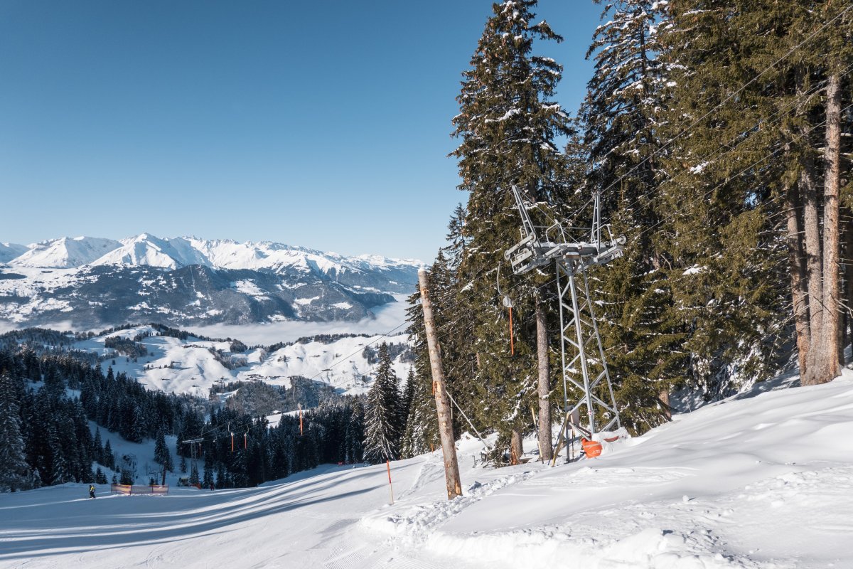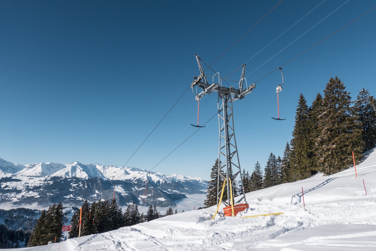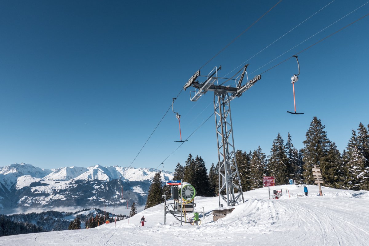 Skigebiet Grüsch-Danusa mit zwei Kabinenbahnen von Leitner, Schleppliften von Leitner und Städeli, sowie einer Sesselbahn von Baco-Poma.