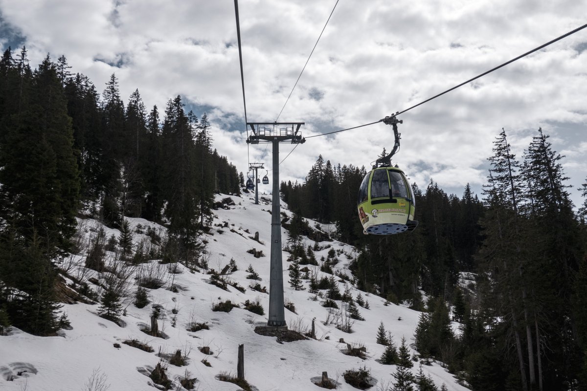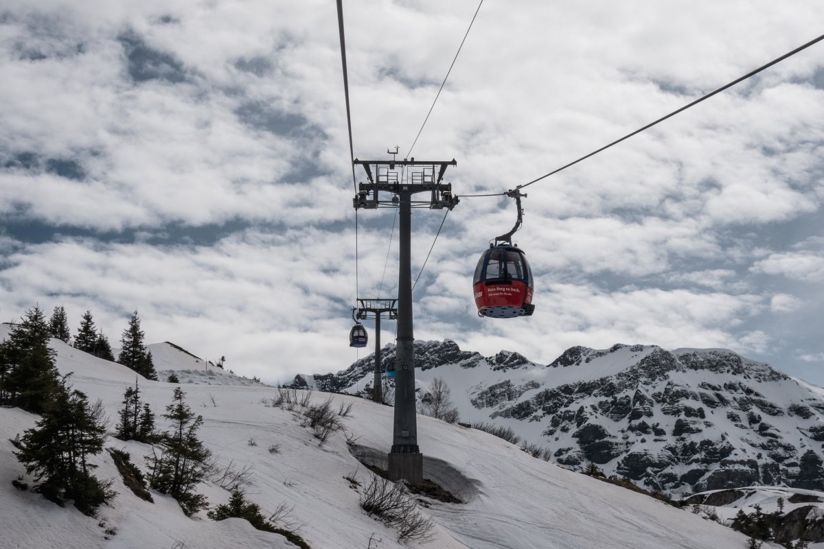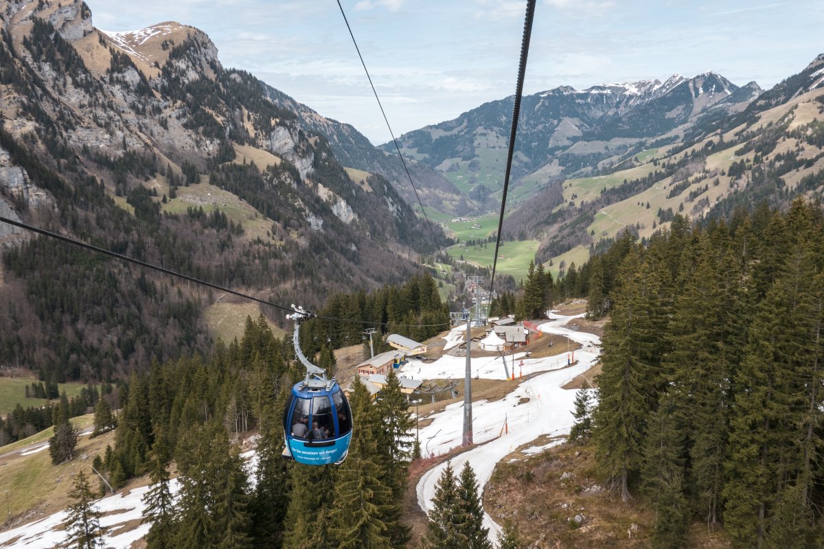 Frühlingsfahrt mit der Kabinenbahn von der Stöckalp nach Melchsee-Frutt, einer der grössten Einseilumlaufbahnen der Schweiz.