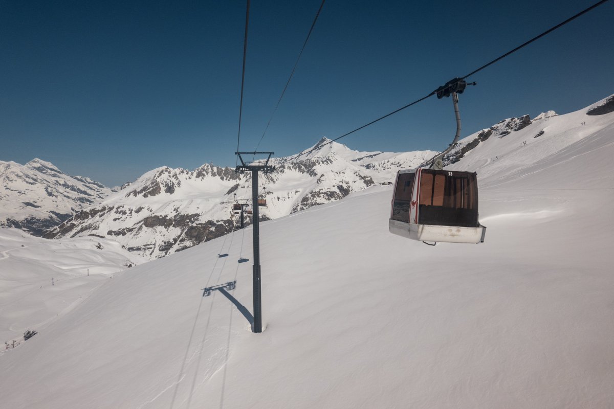 Bilderserie aus dem Espace Killy mit Fokus auf dem Bereich Val d'Isère und speziell der Agudio-Kabinenbahn Vallon de l'Iseran in ihrer letzten Saison.
