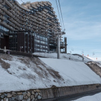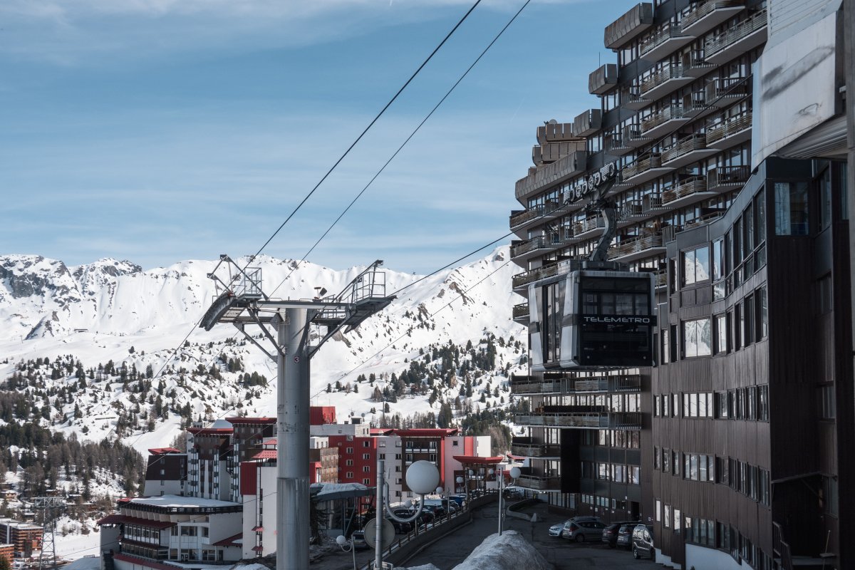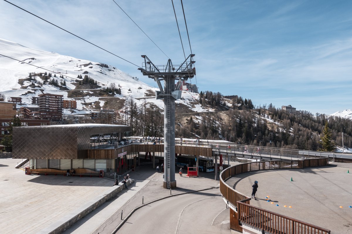 Talstation der Luftseilbahn Télémétro La Plagne, April 2024