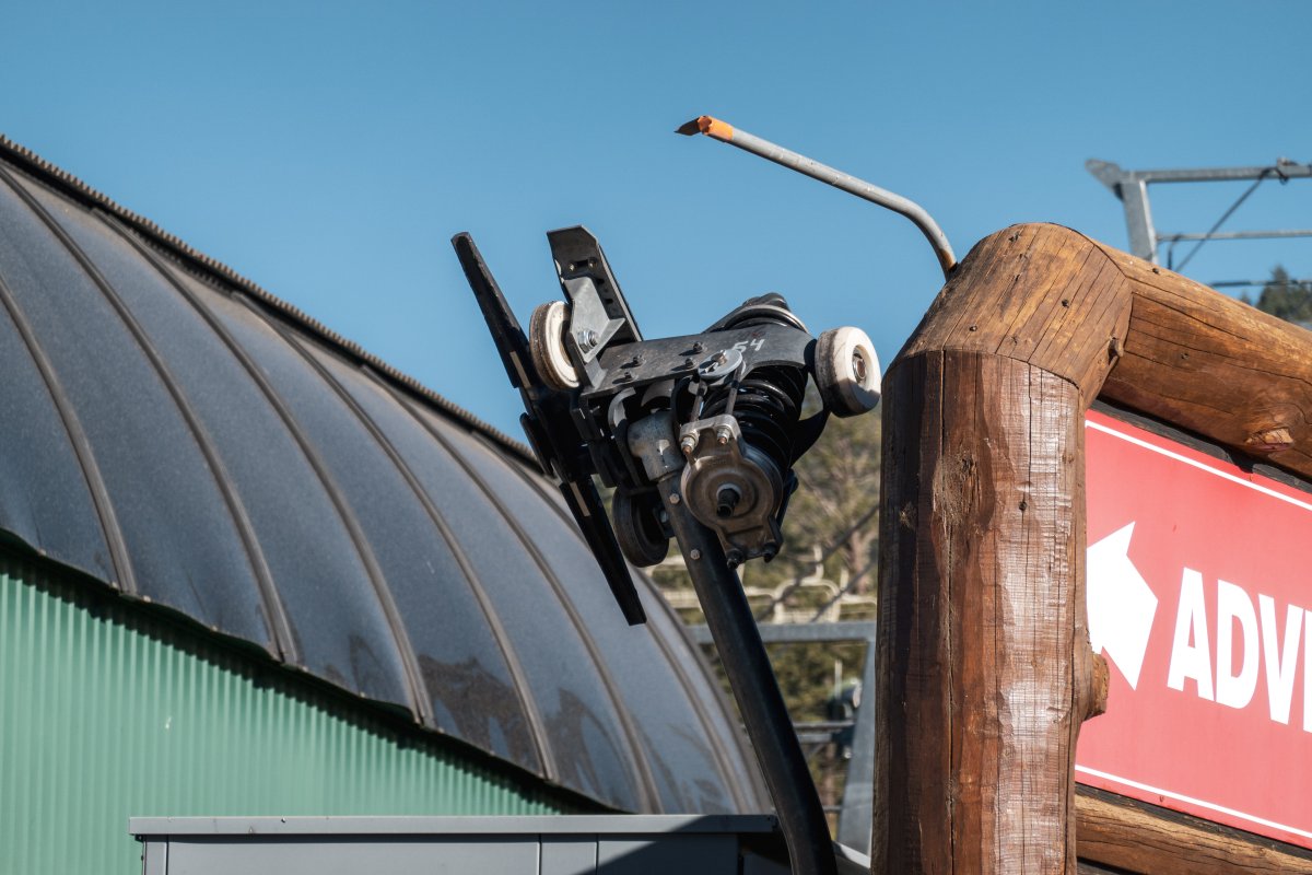Klemme der Sesselbahn Bear Mountain Access, August 2024