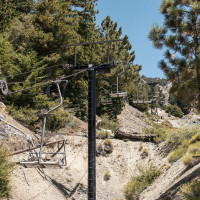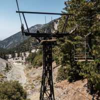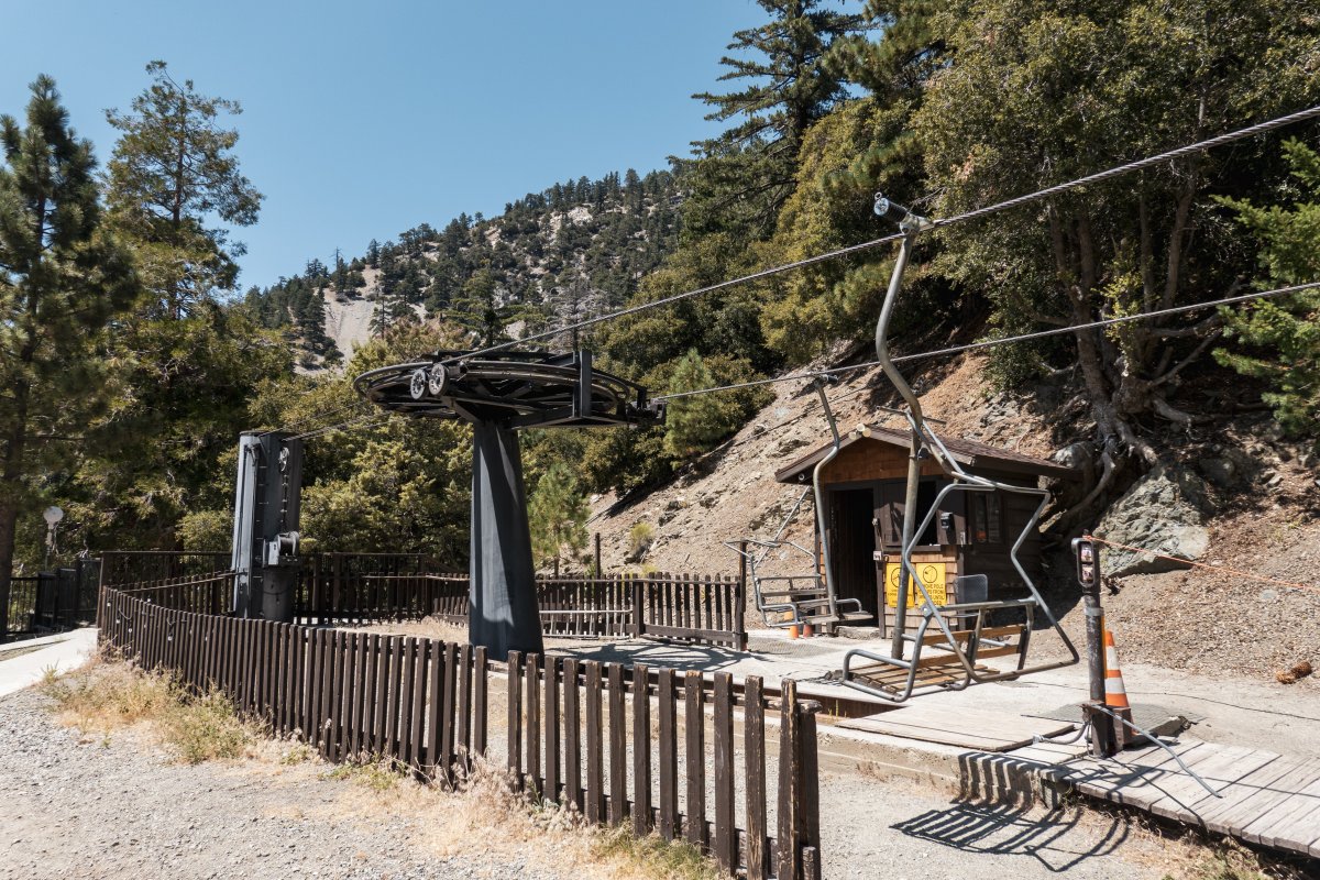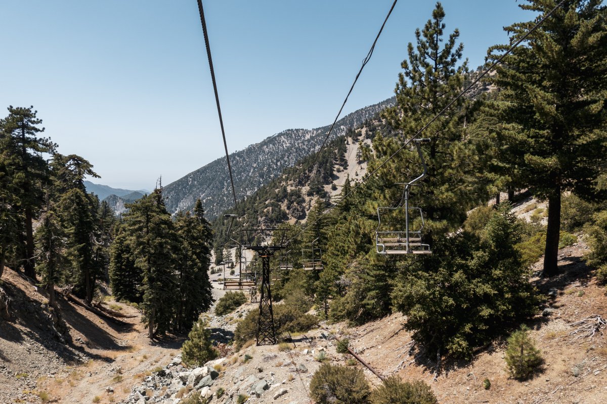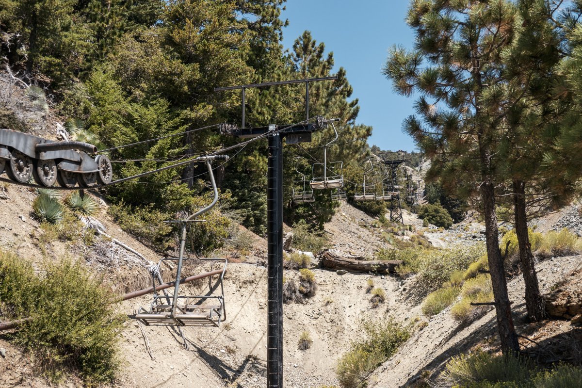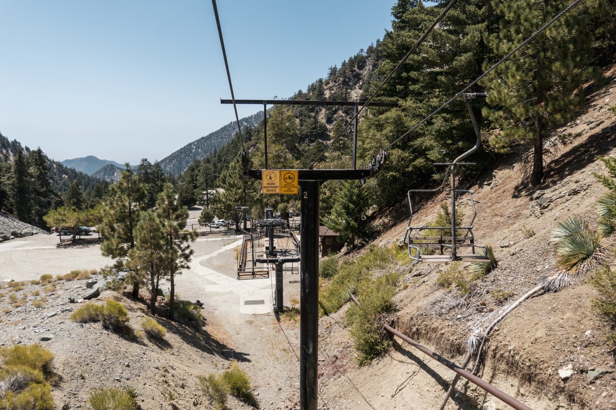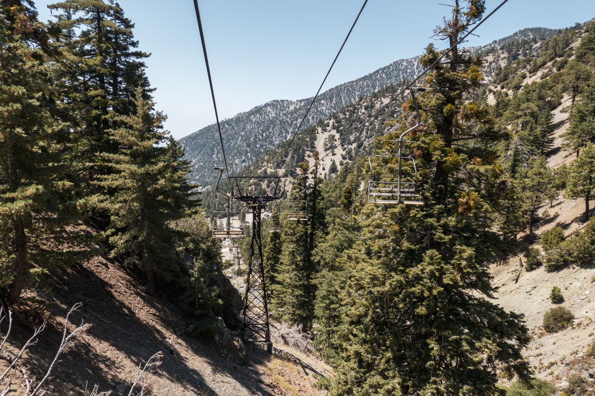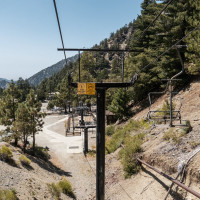 Vier historische Sesselbahnen mit Bestandteilen von Ringer und Müller erschliessen das kleine Skigebiet Mount Baldy im Los Angeles National Forest.