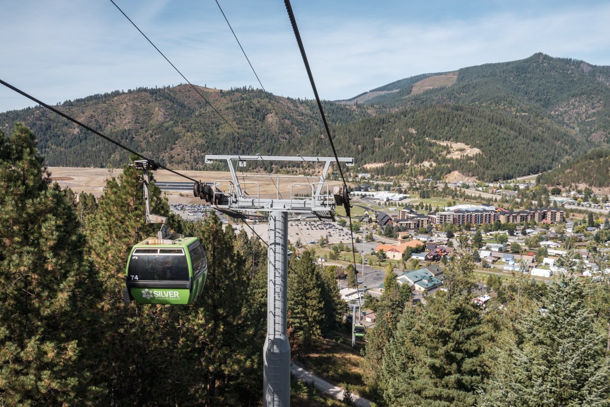 Eine monumentale Kabinenbahn mit fast fünf Kilometern Länge erschliesst das Skigebiet Silver Mountain im Norden Idahos. Bei der Konstruktion handelt es sich um eine der seltenen Achter-Kabinenbahnen von Von Roll.