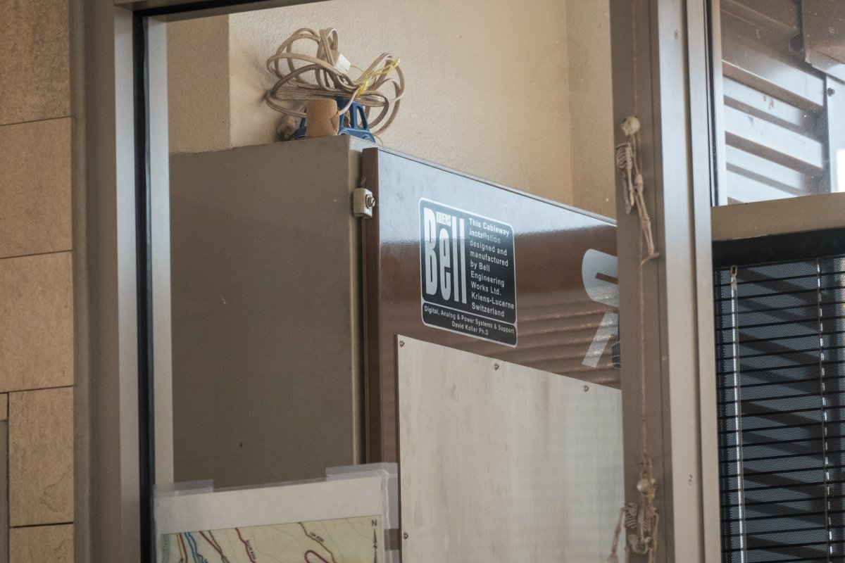 Herstellertafel in der Bergstation der Luftseilbahn Albuquerque-Sandia Peak, Oktober 2024